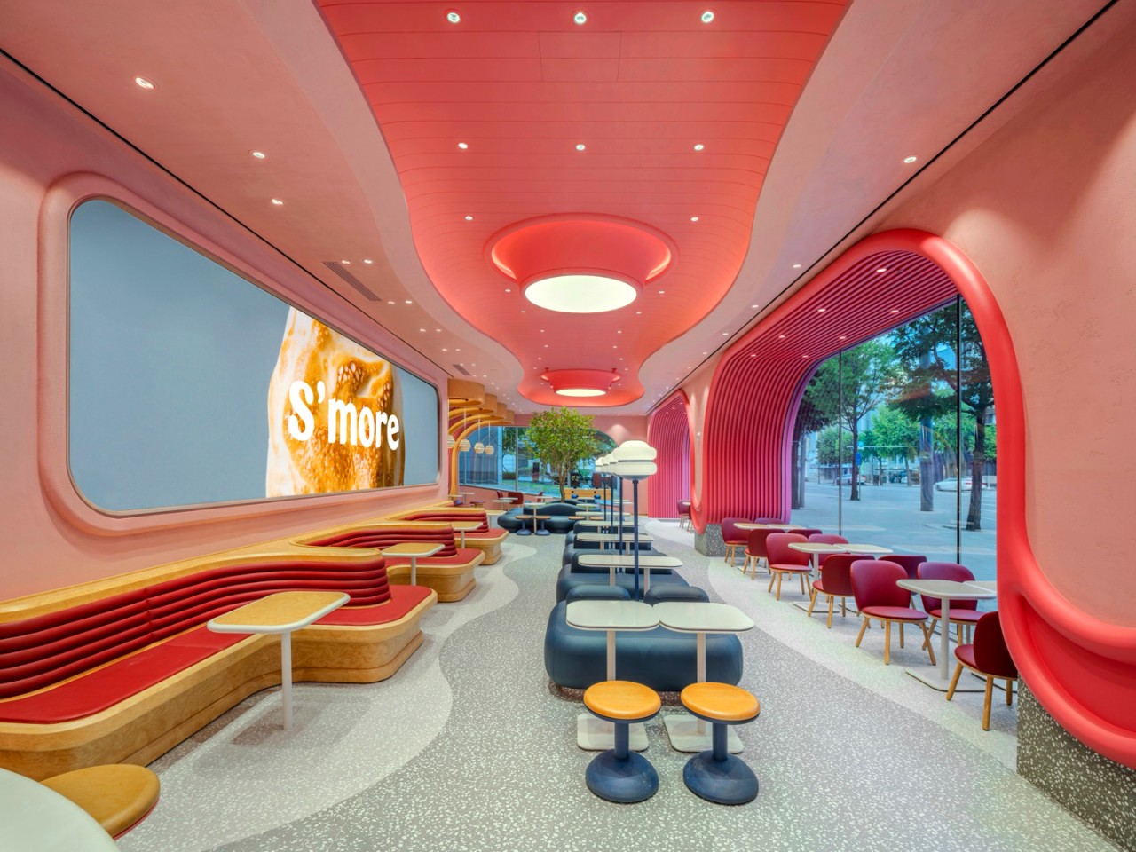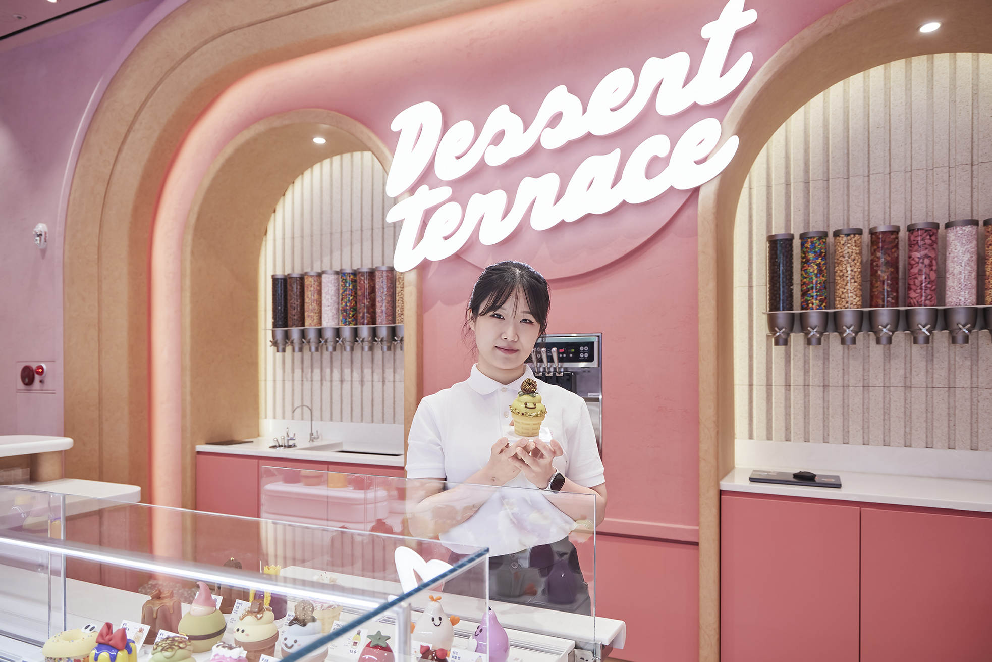 그중에서도 가장 눈길을 끄는 공간은 단연 디저트 테라스! 모찌 라이브, 포켓 모나카, 스모어 마시멜로우처럼, 주문과 동시에 매장에서 바로 조리되는 디저트를 직접 보고, 즐기고, 맛볼 수 있는 공간이죠.