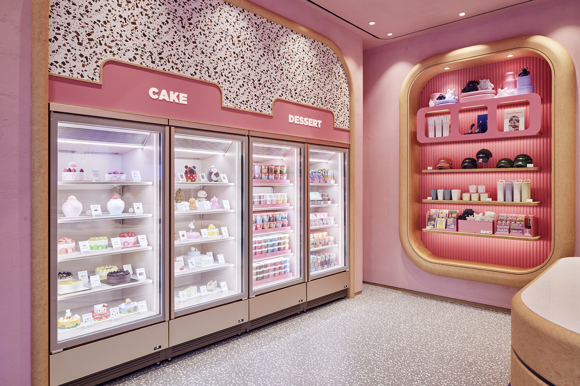 또한 매장 곳곳에는 배스킨라빈스만의 위트와 감성을 담은 굿즈와 다양한 콜라보레이션 케이크가 전시되어 있었는데요. 제품을 구매하는 공간을 넘어, 브랜드의 매력을 오감으로 체험할 수 있는 복합적인 공간으로 설계된 점이 인상적이었습니다.