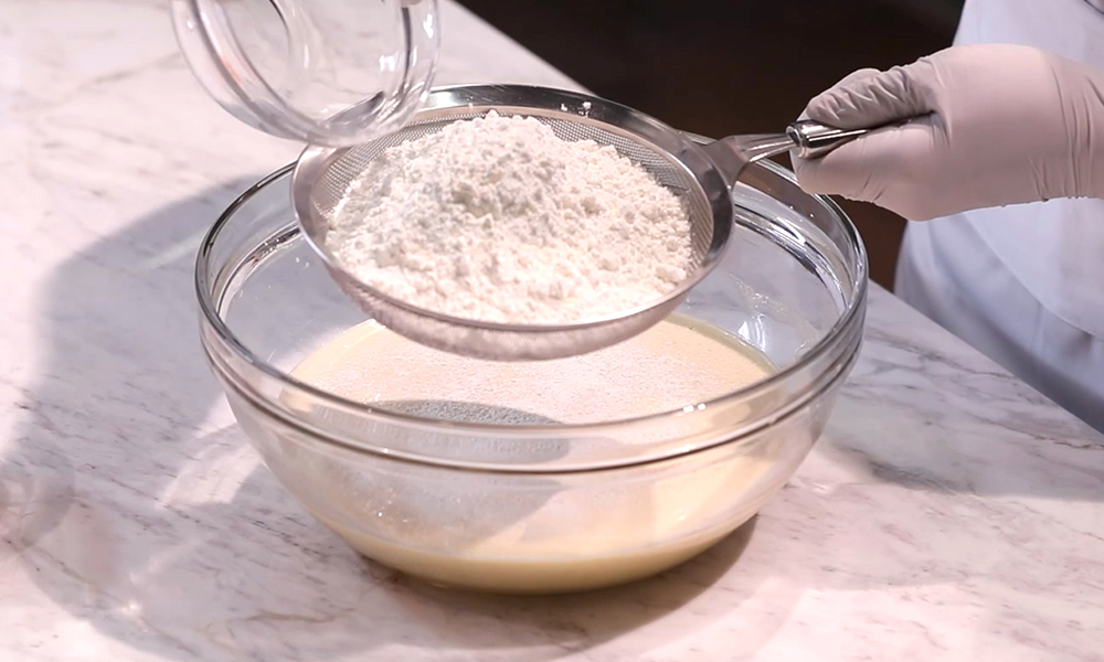 4. 박력분과 베이킹소다를 체에 곱게 친 후 혼합합니다.