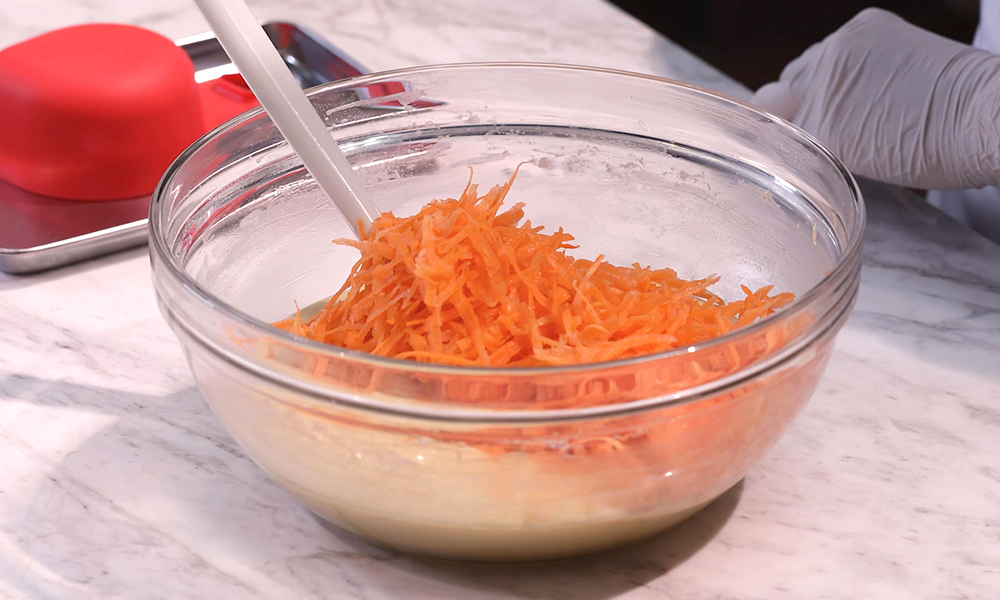 요즘에는 다양한 재료를 활용한 각양각색의 케이크들이 눈과 입을 즐겁게 하는데요. 그중에서도 담백하고 부드러운 맛이 일품인 캐롯 케이크는 영미권에서 먼저 먹기 시작했지만, 우리나라에서도 유행을 거쳐 스테디셀러 디저트로 자리 잡았습니다. 캐롯 케이크를 만들 때는 보통 곱게 갈거나 칼로 채 썰어 케이크를 먹었을 때 당근의 식감이 도드라지지 않으면서도 적당히 느껴질 수 있게 만드는 것이 특징인데요. 당근의 맛이 느껴지는 시트에 크림치즈나 바닐라 크림을 프로스팅해 부드러운 맛을 더합니다.