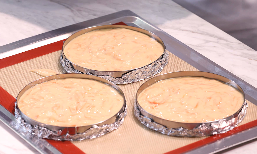6. 완성된 반죽을 팬 높이의 70% 정도가 되게끔 채웁니다.