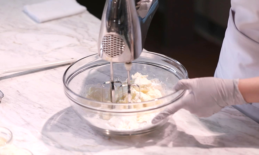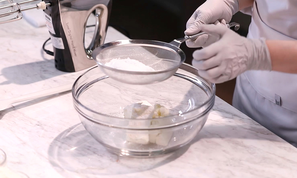 1. 크림치즈와 체 친 슈가 파우더를 준비한 후 잘 섞이도록 혼합합니다.