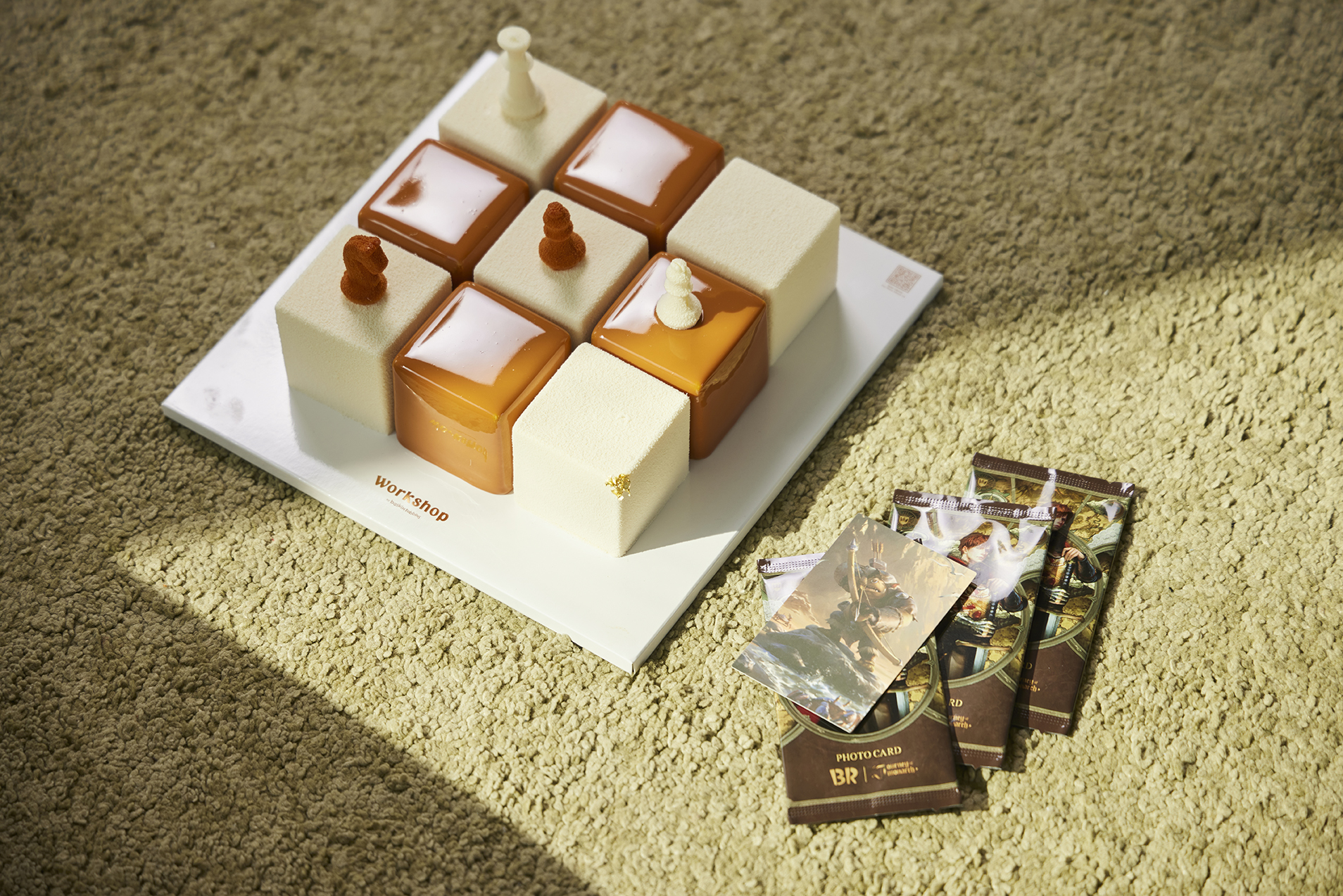 게임 속 황금빛 격자무늬의 체스보드를 모티브로 탄생한 골든 샤이닝 체스 케이크