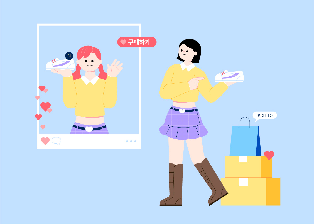 디토 소비는 주로 소셜 미디어와 연예인, 인플루언서의 영향으로 확산하고 있습니다. 제품의 품질은 기본이고 ‘누가 사용하느냐’가 중요한 요소로 작용하게 된 거죠. 소비자는 인플루언서나 유명 인사의 추천을 통해 제품을 발견하고, 그 제품을 사용하는 사람들의 이미지와 가치관을 고려하여 구매 결정을 내리게 됩니다. 추천을 통해 소비하므로 의사결정 시간이 단축되는 특징이 있어요.
