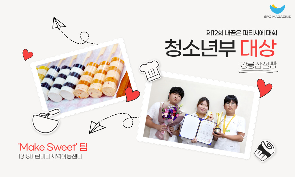 지금까지 제12회 ‘내 꿈은 파티시에 대회’ 현장 소개해 드렸습니다. 앞으로도 SPC는 파티시에의 꿈을 가진 아동 및 청소년을 위해 경연대회 개최를 넘어서 제품화까지 연결될 수 있도록 사업을 확대할 예정인데요. 파티시에 꿈나무들이 마음껏 기량을 펼치는 그날까지 SPC가 언제나 함께하겠습니다.