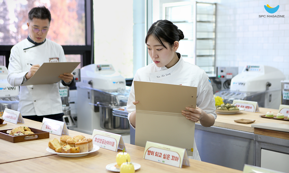 SPC의 제과·제빵 전문가와 한국제과기능장협회 소속 이소영 교수는 작품의 맛과 예술성, 시장성, 완성도 등을 평가해 수상작을 선정했습니다. 이날 대회에는 ‘내 꿈은 파티시에 대회’에서 3회 연속 대상을 수상하고, ‘SPC 내 꿈은 파티시에’ 1기 장학생으로 졸업해 현재 SPC그룹에서 근무 중인 김민정 졸업생이 특별심사위원으로 참석해 대회의 의미를 더했는데요. 심사위원들은 출품작을 직접 맛보고, 하나씩 비교하며 그 어느 때보다 평가에 신중을 기했습니다.