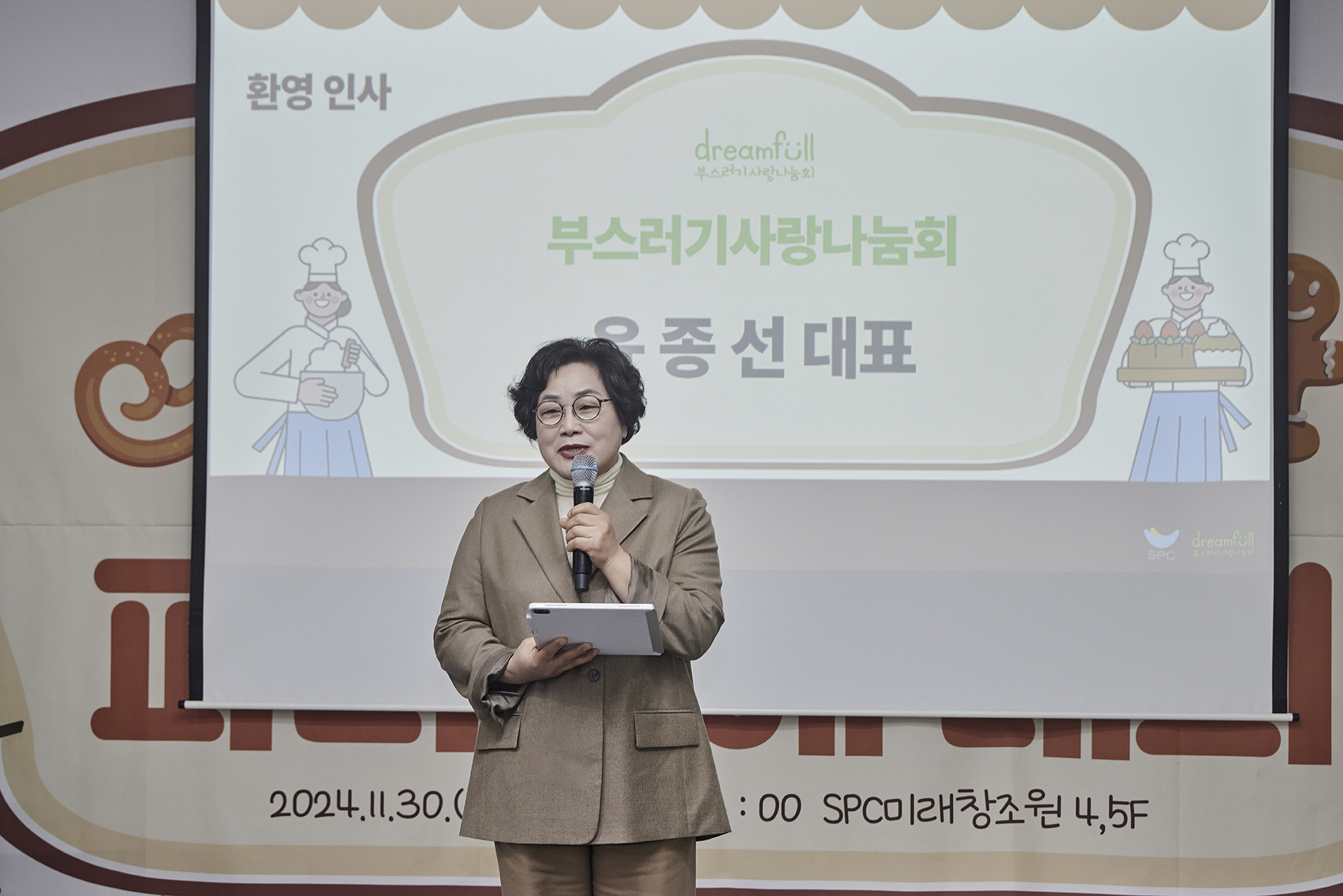 최규철 심사위원장(SPC 컬리너리 아카데미)과 윤종선 대표(부스러기사랑나눔회)/평가 기준을 소개하자 귀담아듣는 참가자들