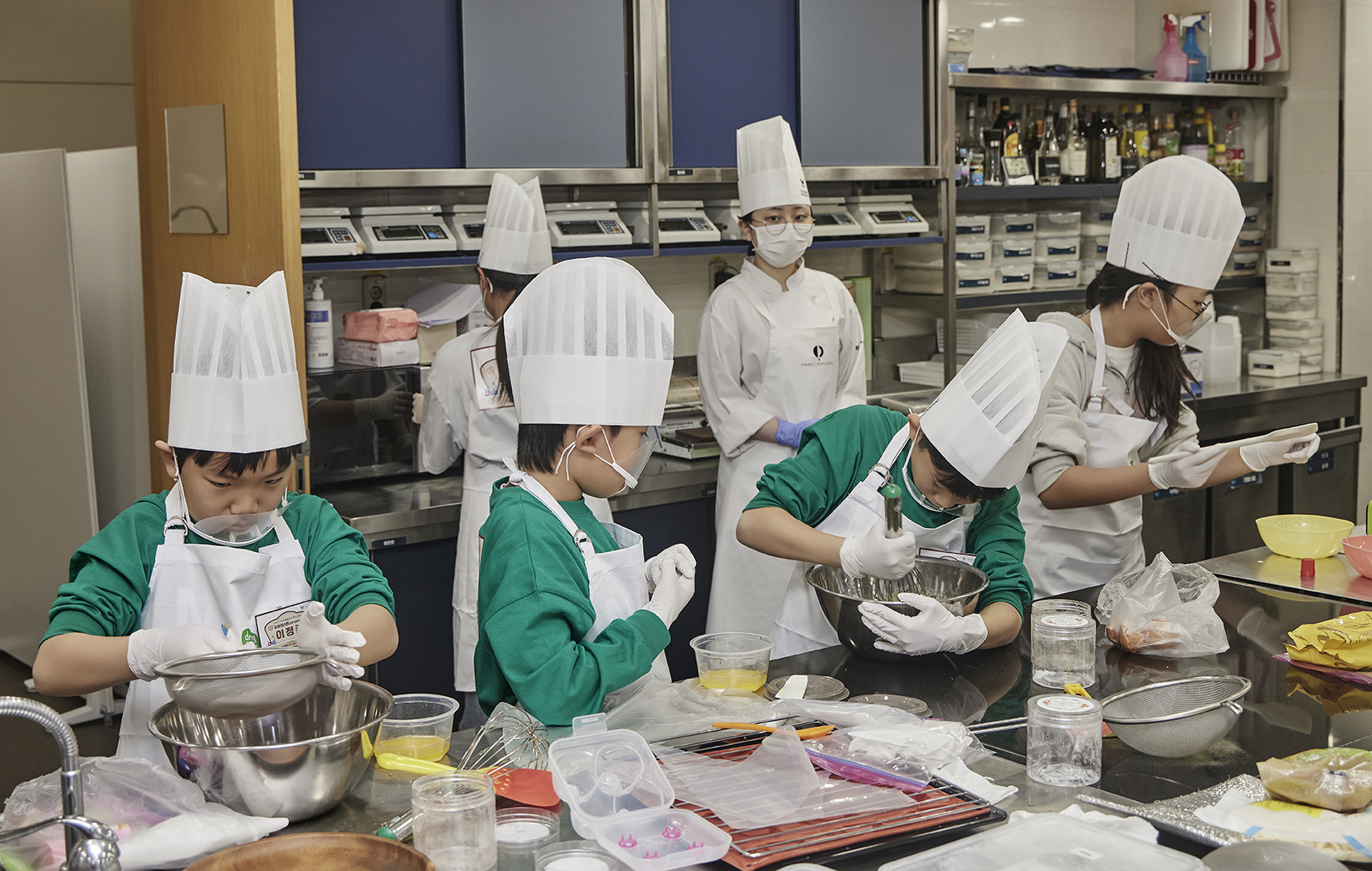 오전 10시, 경연이 시작되자 20팀의 아동·청소년 참가자는 지난 1년간 준비한 메뉴를 만드는 데 돌입했습니다. 아동부와 청소년부로 나누어 2개 실습장에서 베이킹을 진행했는데요. 누가 먼저랄 것도 없이 모든 참가자는 재료를 냉장고에 넣고 씻거나 손질하는 등 일사불란하게 움직였습니다.