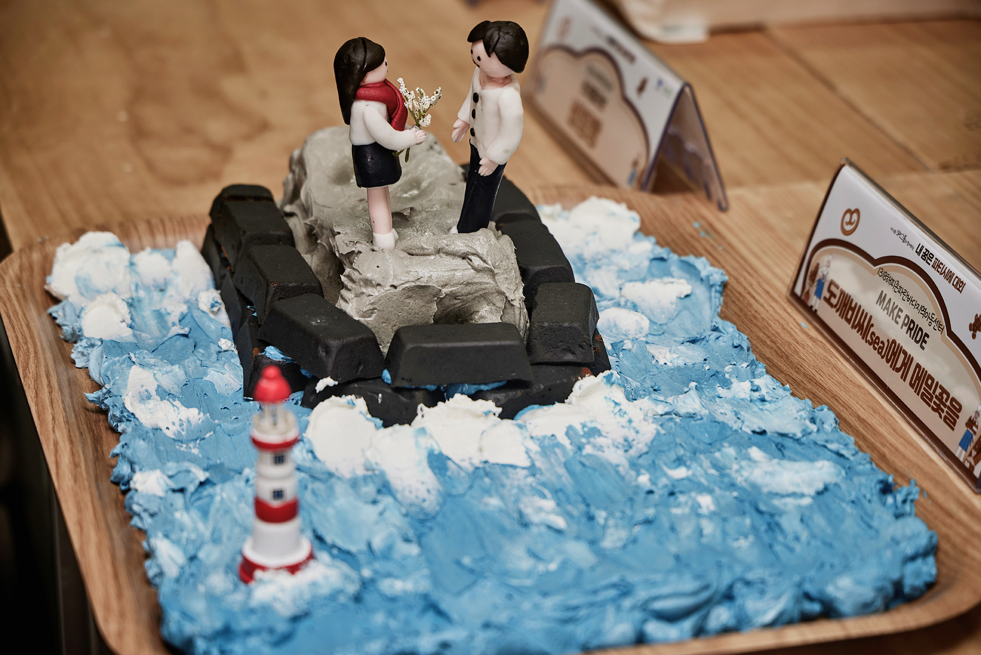 바다를 주제로 강릉의 사계절을 나타내는 다양한 색깔의 피낭시에를 담은 작품을 선보인 ‘메이크 스위트’팀