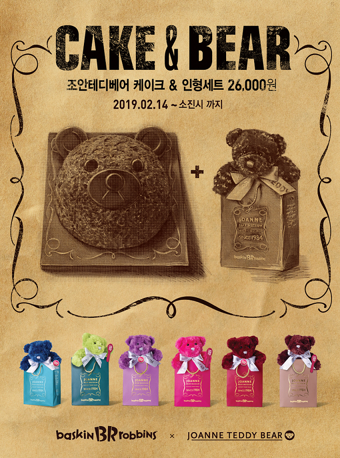 SPC그룹이 운영하는 배스킨라빈스가 발렌타인데이를 맞아 ‘조안테디베어 케이크·인형 세트’ 프로모션을 진행한다고 14일 밝혔다. 세계적인 테디베어 아티스트 ‘조안 오’가 제작하는 ‘조안테디베어’ 컨셉의 케이크와 인형 세트를 2만 6천원에 제공하는 행사다.