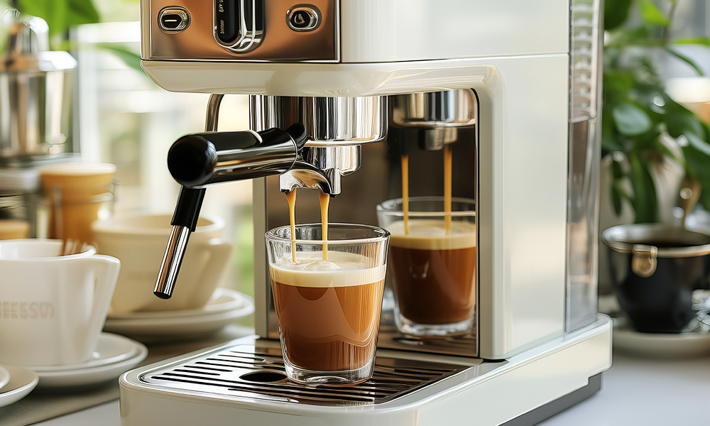 커피의 풍부한 향과 크레마를 생성하는 에스프레소 머신