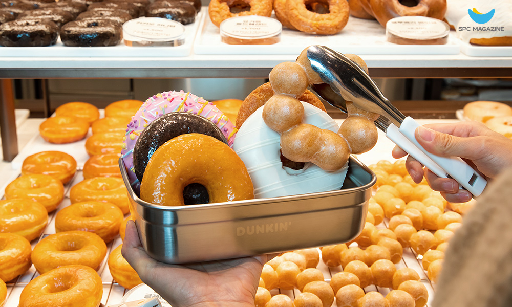던킨은 재활용 가능한 소재를 적극 활용하며 환경보호 활동에 나서고 있는데요. 2021년 8월부터는 플라스틱 일회용 컵의 인쇄 로고를 양각로고로 바꿔 재활용이 용이하도록 했고, 올해 9월 기준 1,200만 개의 사용량을 기록했습니다. 이 외에도 친환경 용지, 빨대 없이 마시는 리드(컵 뚜껑) 등 포장재를 개선하는 각종 작업을 진행 중이며, 음료 및 도넛 구매 시 다회용기 사용에 대한 300원 할인을 제공하는 등 매장 내에서도 친환경 활동은 이어지고 있습니다.