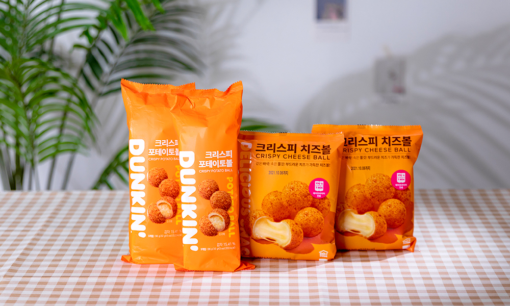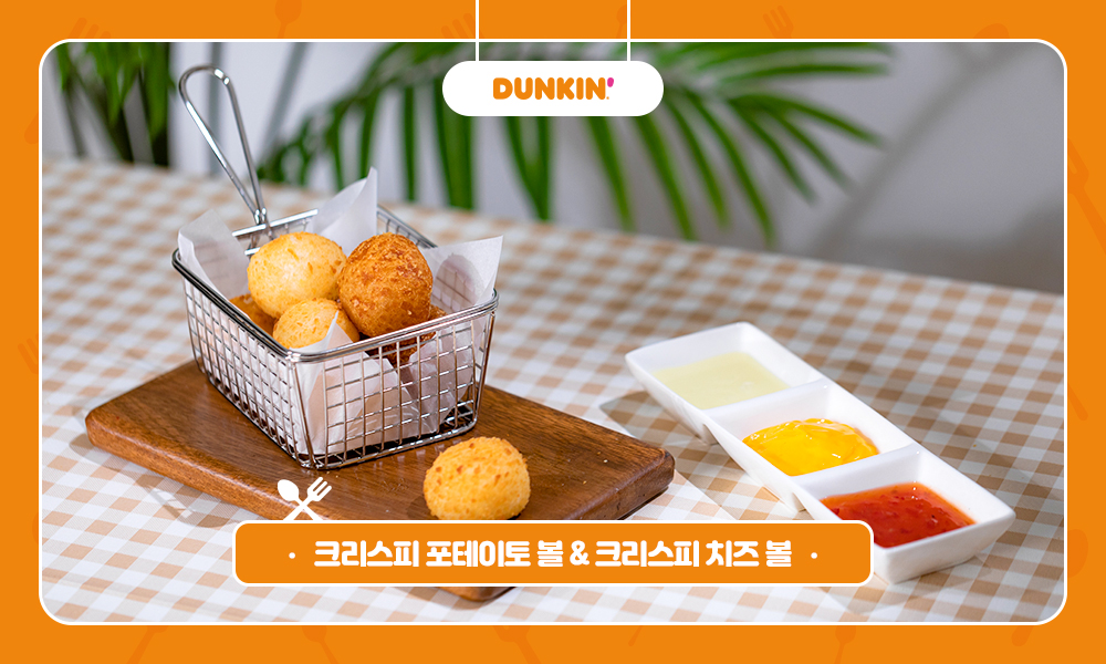 마지막으로 만들어볼 제품은 던킨의 ‘크리스피 포테이토볼’과 ‘크리스피 치즈볼’입니다. 입이 심심할 때 하나씩 집어먹기 좋은 핑거스낵으로, 바삭바삭한 튀김 옷 속에 메쉬드 포테이토와 쭉 늘어나는 치즈가 꽉 차 있어 디저트로 손색이 없습니다. 특히 에어프라이어만으로 쉽게 완성할 수 있어 귀찮은 설거지도 필요 없으니 더욱 완벽한 제품입니다.