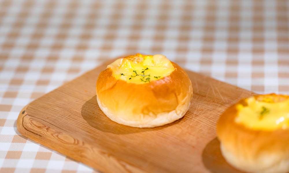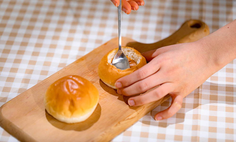 Step 1. 모닝빵 가운데에 홈을 내주세요.