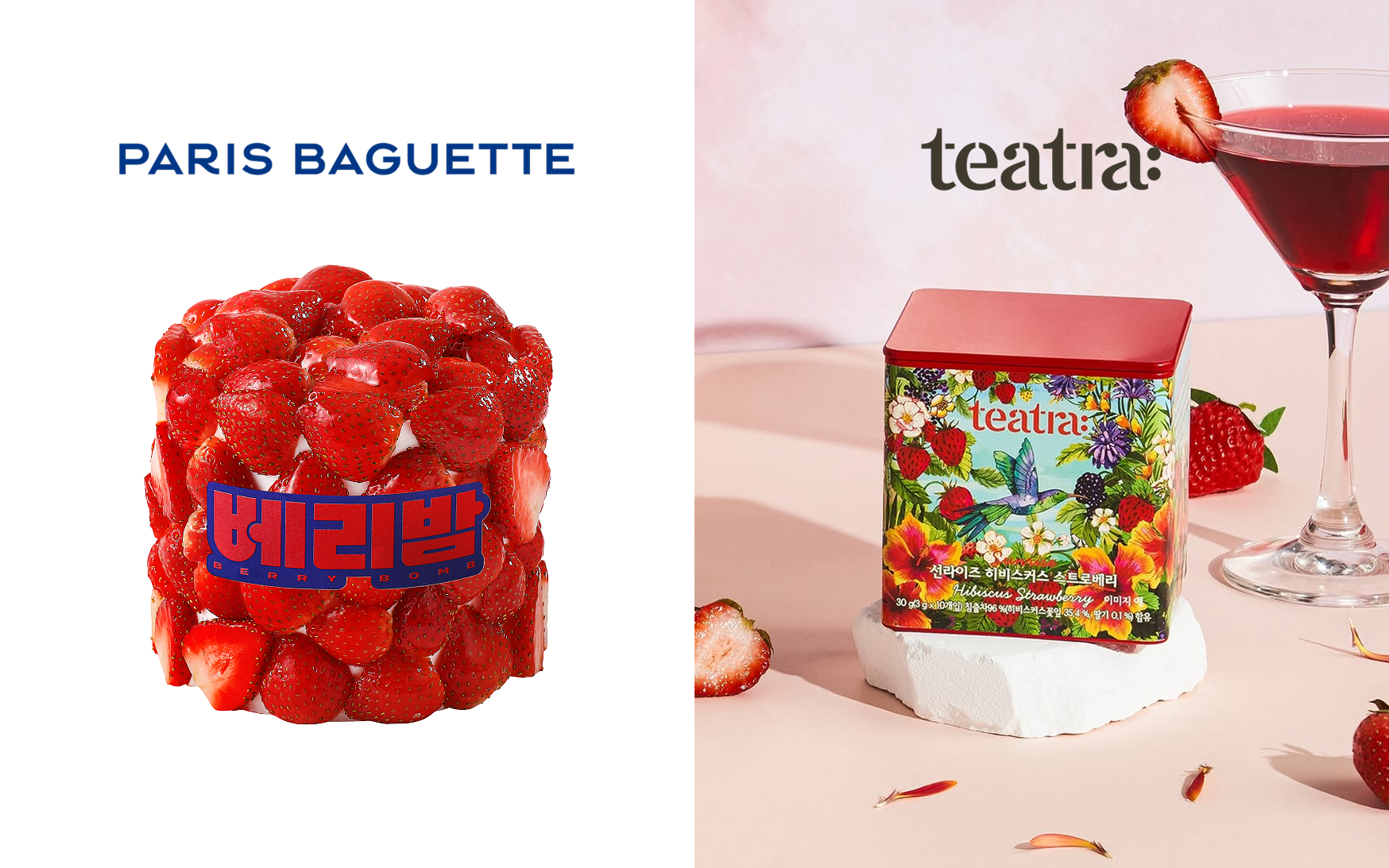 ① 파리바게뜨 ‘베리밤 케이크’ × 티트라(TEATRA) ‘선라이즈 히비스커스 스트로베리’