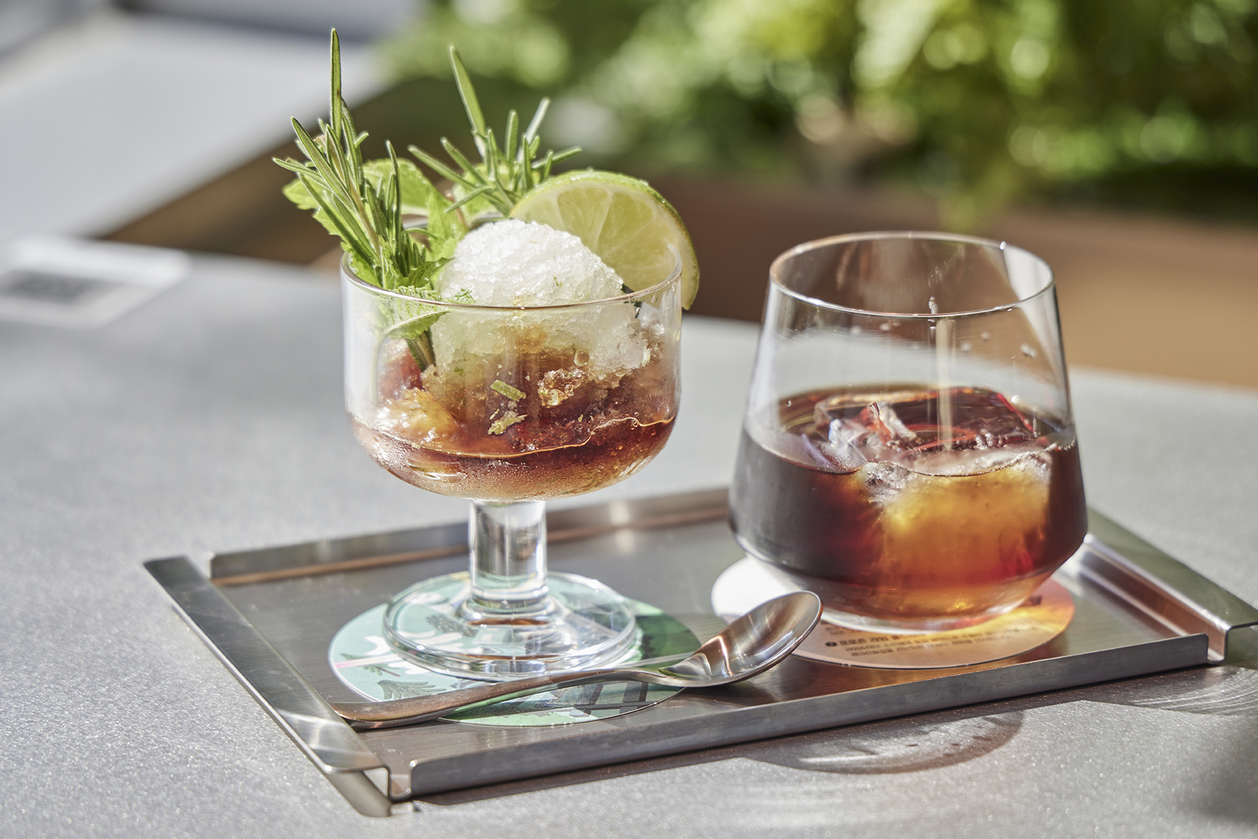 또 다른 시그니처 메뉴인 숲길 플라이트는 경의선숲길의 여유로운 감성과 자연 친화적인 무드를 그대로 담아냈습니다. 산뜻한 숲길 블렌드 콜드브루와 청량한 프로즌 라임 샤베트가 무더운 여름날을 상쾌하게 만들어줄 거예요.