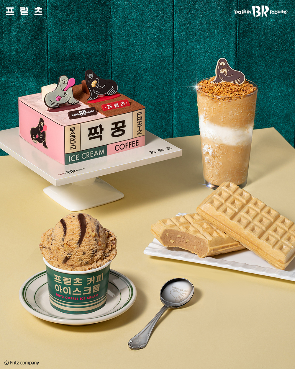‘내 짝꿍 프릳츠’는 이번 콜라보를 기념하여 출시한 아이스크림 케이크입니다. ‘프릳츠’의 캐릭터인 물개가 ‘배스킨라빈스’의 핑크 스푼을 든 것으로 두 브랜드의 만남을 귀엽게 표현했는데요. 신제품 ‘프릳츠 커피 아이스크림’을 비롯해 ‘뉴욕 치즈케이크’와 ‘초콜릿’, ‘바닐라’까지 ‘배스킨라빈스의’ 인기 플레이버 4가지를 한 번에 맛볼 수 있습니다. 이외에도 ‘프릳츠’의 대표 바리스타 송성만 이사의 ‘월넛 커피’ 레시피를 블라스트로 구현한 ‘프릳츠 월넛커피 블라스트’와 바삭한 모나카 사이에 ‘올드독’ 원두로 만든 진한 커피 아이스크림이 샌드된 ‘프릳츠 커피&넛츠 모나카’를 출시해 고급화된 소비자들의 커피 입맛을 만족시켰습니다.