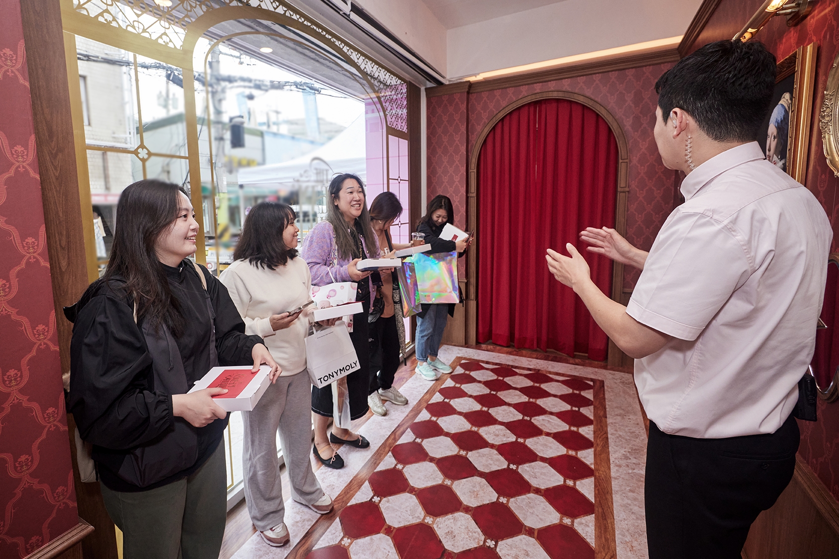 팝업스토어를 찾은 이용객들이 직원의 설명을 듣고 있는 모습
