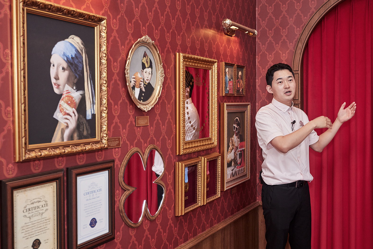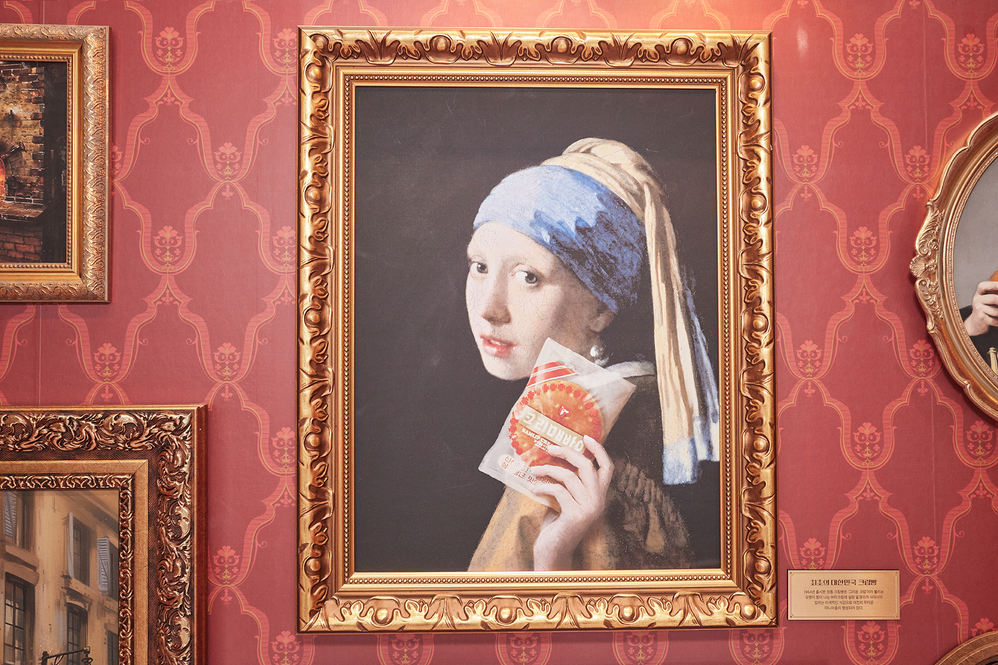크림 아뜰리에에 들어서면 초대장 확인 후 본격적으로 공간을 둘러볼 수 있는데요. 첫 번째 공간 ‘히스토리존’을 만나게 됩니다. 이곳은 정통크림빵의 핵심인 크림의 과거, 현재, 미래를 살펴볼 수 있는 곳으로 벽면에 세계적으로 유명한 명화로 꾸며져 있어요. 명화 속에 SPC삼립의 제품을 발견하는 재미가 있는 곳이죠.