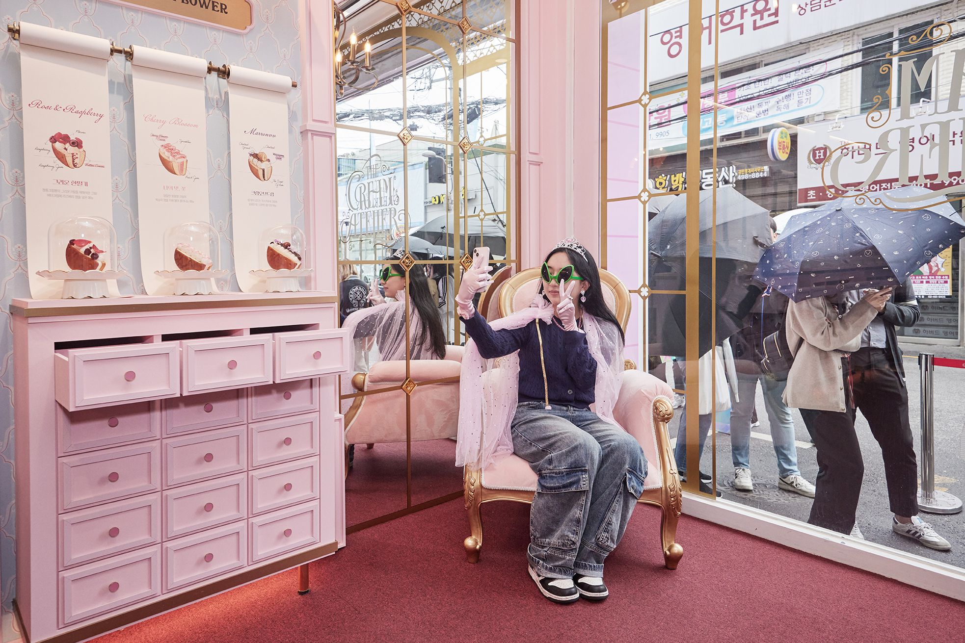 팝업스토어 공간 구석구석 화려하면서도 아기자기하게 꾸며진 포토 스팟도 놓치지 마세요! 세팅된 소품들을 촬영할 수 있을 뿐만 아니라, 한쪽에 마련된 분홍빛 소파에 앉아 인증샷도 남길 수 있답니다!💗