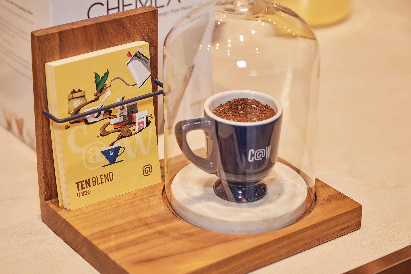 ‘텐 블렌드’는 에티오피아와 인도네시아 커피를 블렌딩한 것으로, 여기에 SPC 연구진이 개발한 유산균 발효를 더해 한층 풍부한 맛을 냅니다. 아라비카의 고향인 에티오피아 커피는 향과 산미로 유명한 데다가 고유한 흙 내음이 있는 인도네시아 커피의 장점을 취했으며, 추적이 가능할 만큼 공신력 있고 검증된 커피 농장의 것을 사용하고 있다는 것을 김승백 바리스타를 통해 알 수 있었습니다. 또 커피 애호가였던 화학자가 발명한 케멕스는 향을 머금은 커피를 추출하는 데 제격인 도구로, 향과 산미가 뛰어난 ‘텐 블렌드’와 궁합이 좋은 이유를 설명했습니다.