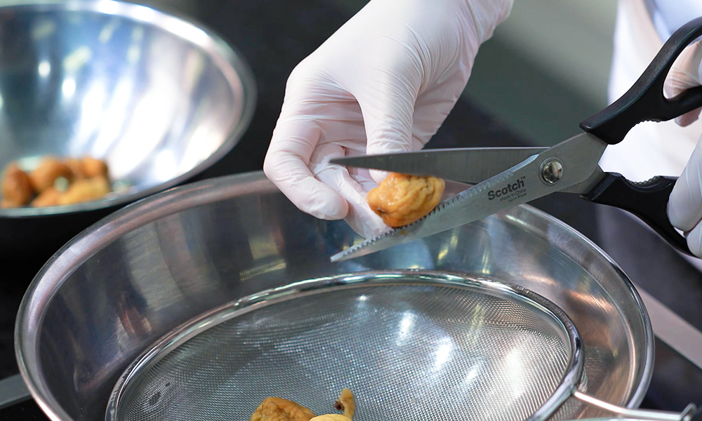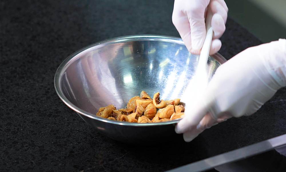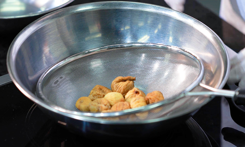 1. 무화과를 끓는 물에 1분간 데친 후 체에 걸러주세요. 이때 수분이 없는 반건조 무화과를 사용하는 것이 좋습니다.