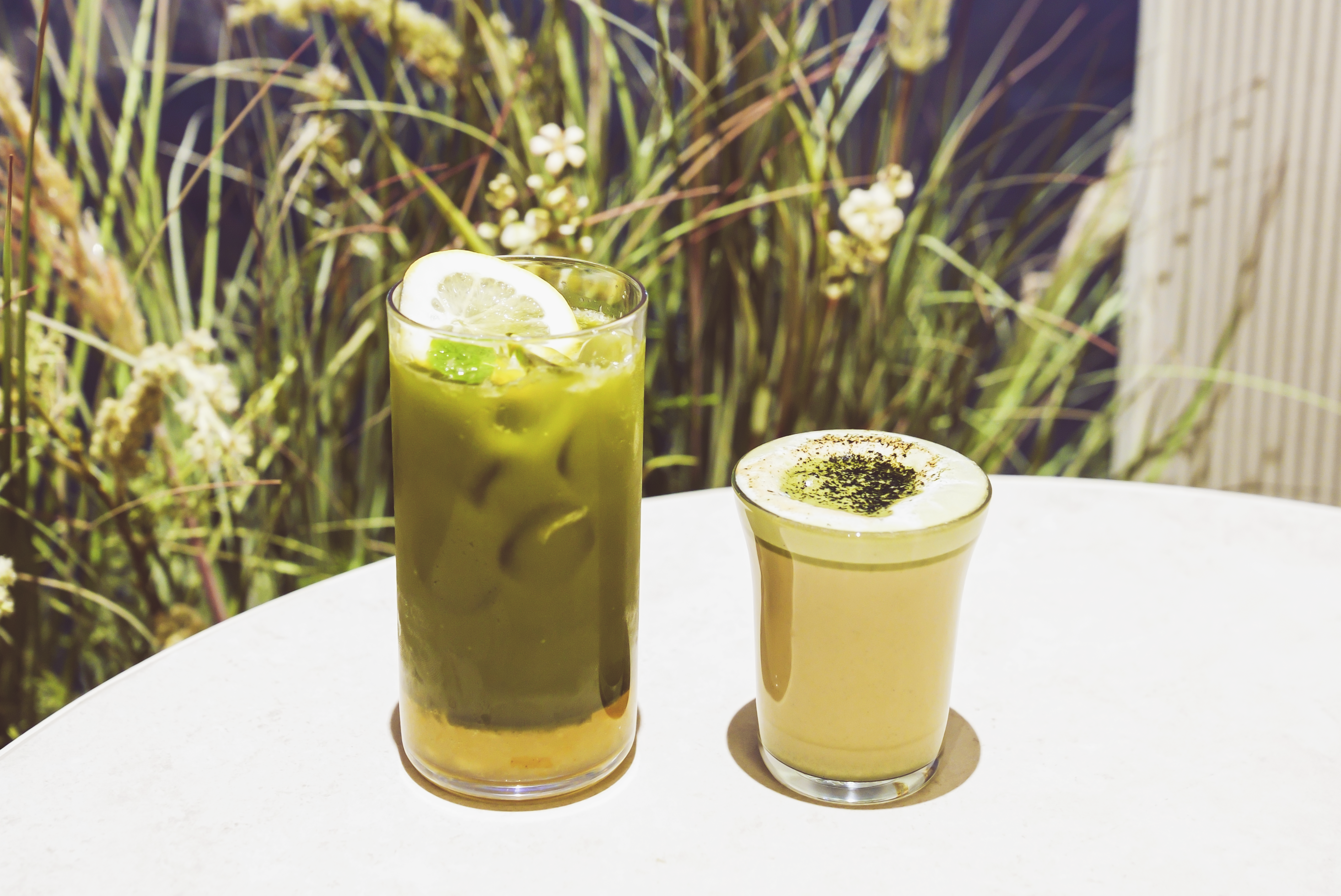 유자 말차 에이드(좌), 쑥크림라떼(우)
