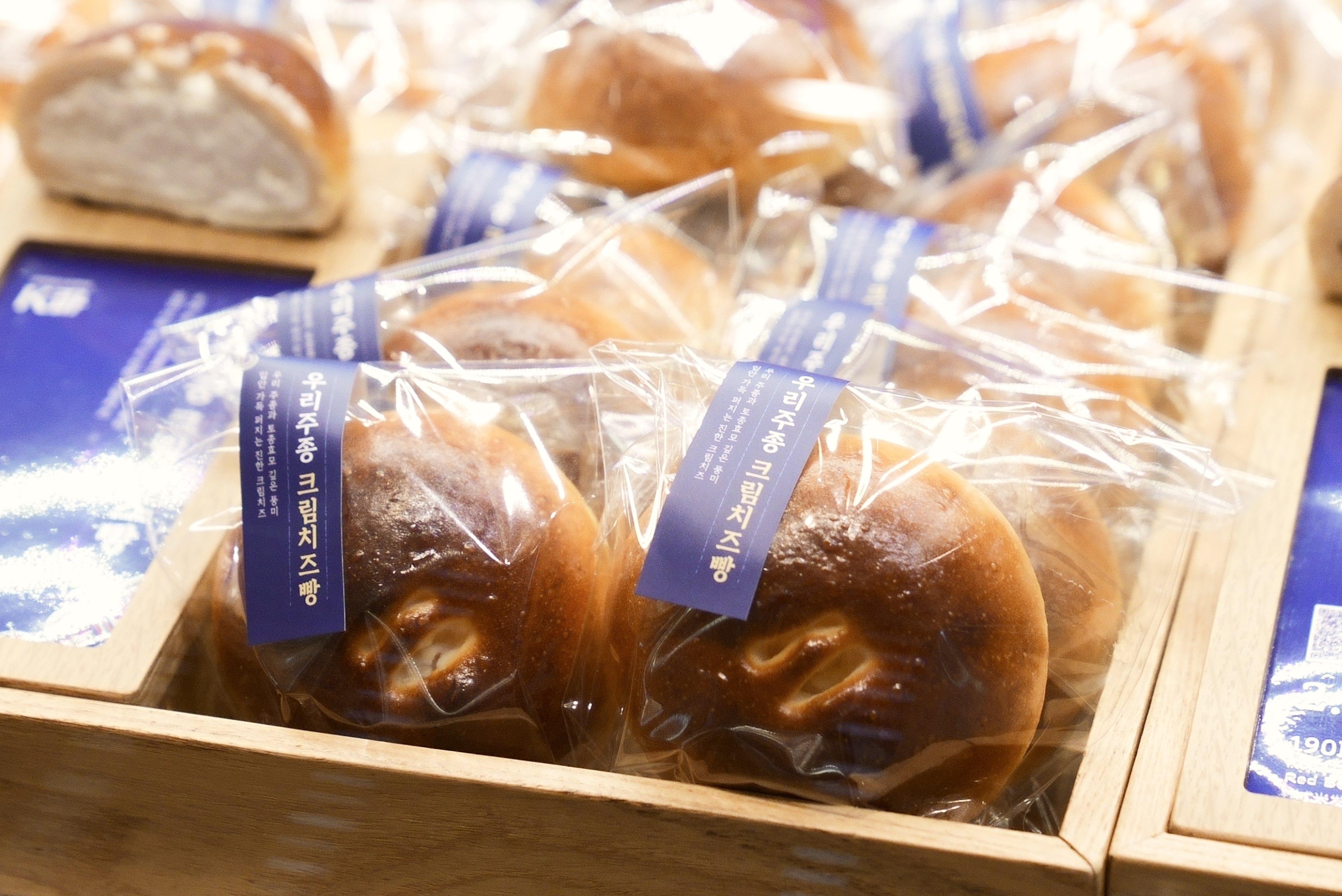 광화문 1945점에서만 만나 볼 수 있는 특별한 제품도 있었습니다. 매대를 장식하고 있는 우리 주종빵 라인업과 단팥크림코팡을 비롯해 황금 크림빵·이즈니 버터크림빵은 상미당의 전통과 현대인의 취향을 잘 조합한 느낌이었어요.