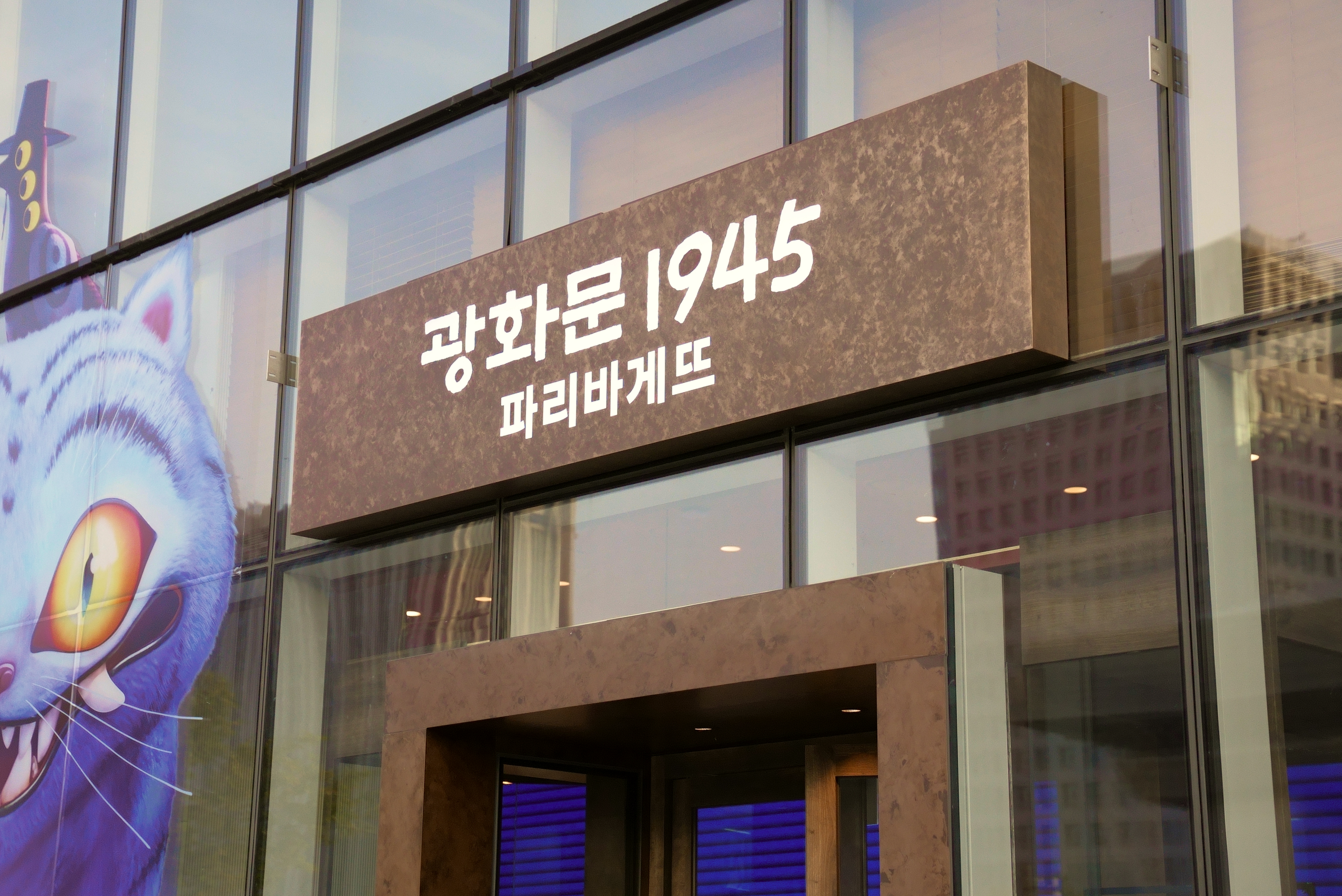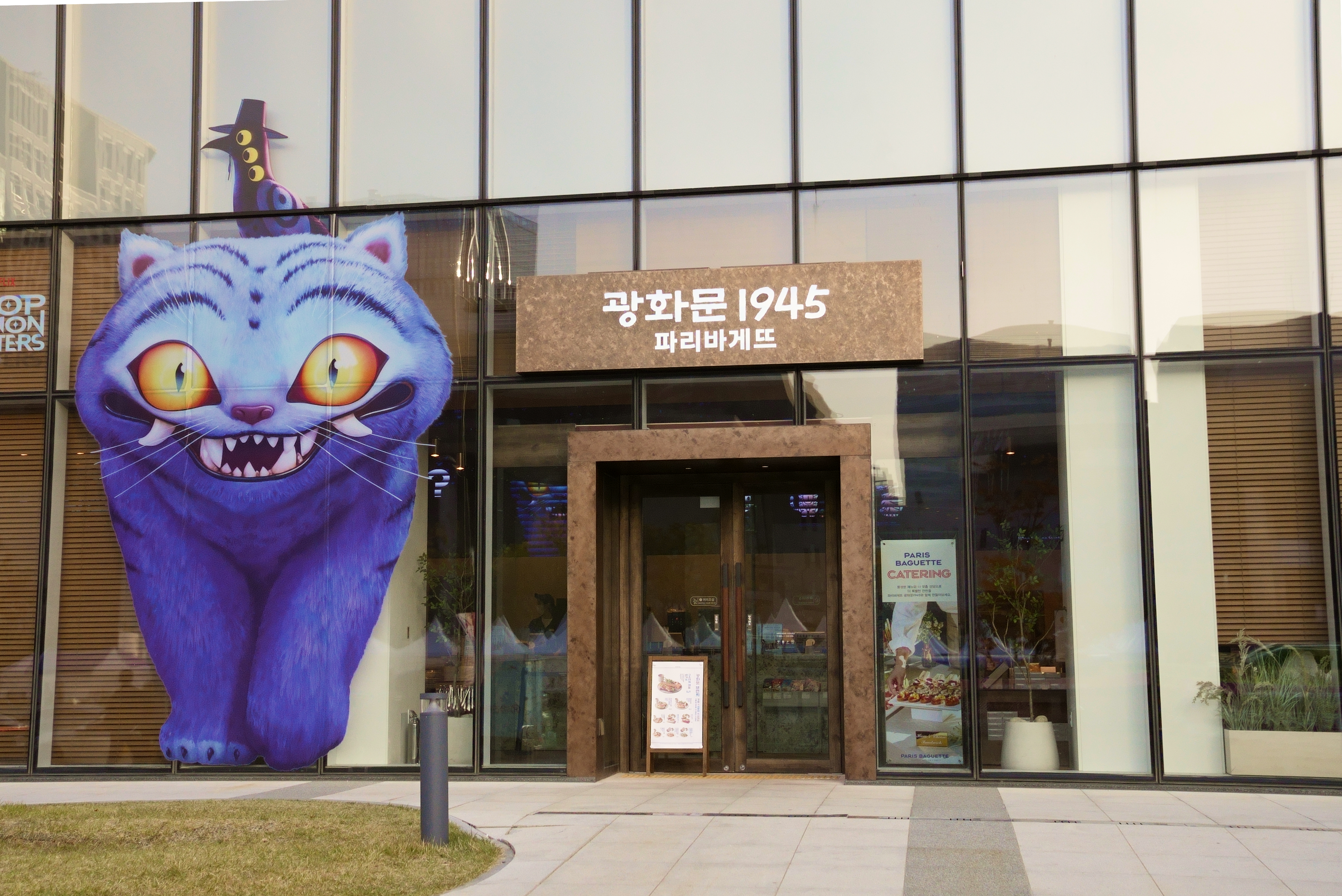그 대신 차분한 느낌의 갈색을 활용했고, 붓글씨를 연상케 하는 ‘광화문 1945 파리바게뜨’라고 쓰인 한글 간판이 보였습니다. 마치 옛 건물의 현판과 같이 한국 특유의 절제미를 느낄 수 있는 대목이었습니다.