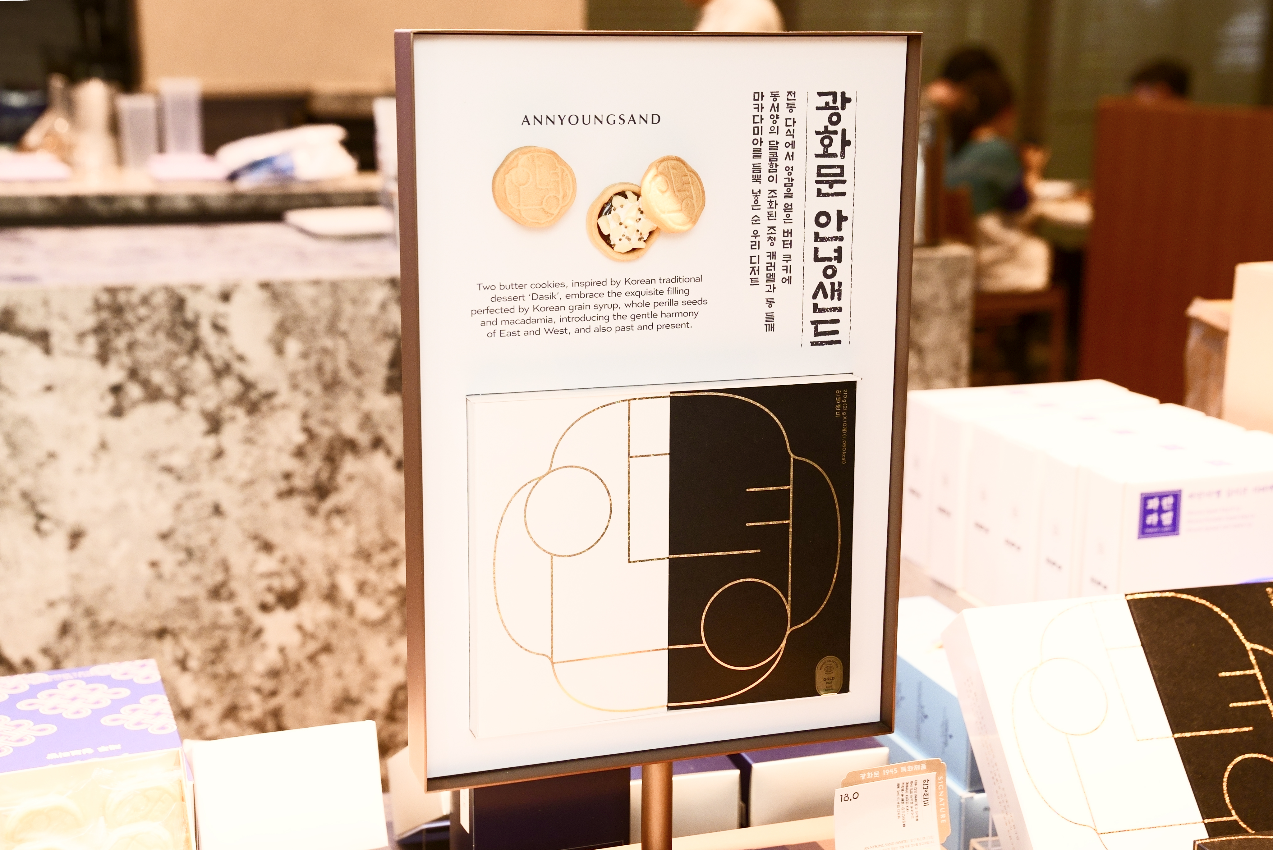 그 중심에는 파리바게뜨 광화문 1945점의 시그니처 제품인 ‘안녕샌드 광화문 에디션’이 자리하고 있었는데요. 버터쿠키와 크림 조합에 마카다미아와 통들깨를 더해 한국적인 풍미를 살린 구성이었습니다. 특히 청자를 모티브로 한 ‘청자 에디션’ 패키지는 이 매장의 상징성을 한층 더 또렷하게 보여주는 요소였어요.