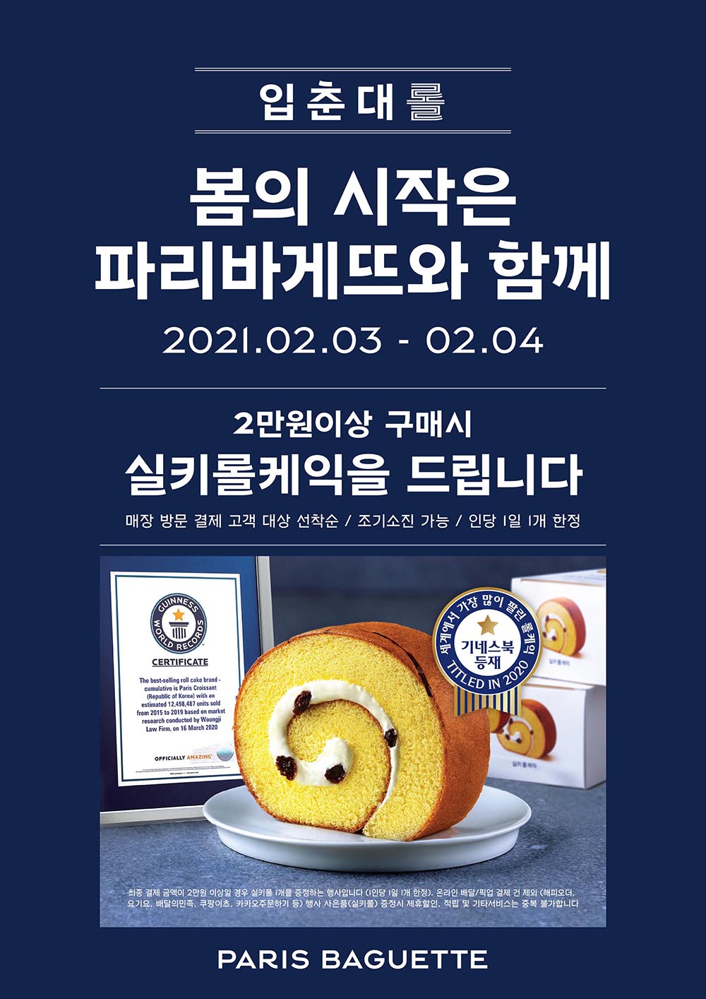 파리바게뜨가 봄의 시작을 알리는 ‘입춘’을 맞아, 봄맞이 기념 ‘실키롤케익’을 증정하는 ‘입춘대롤’ 프로모션을 진행한다고 3일 밝혔다.
