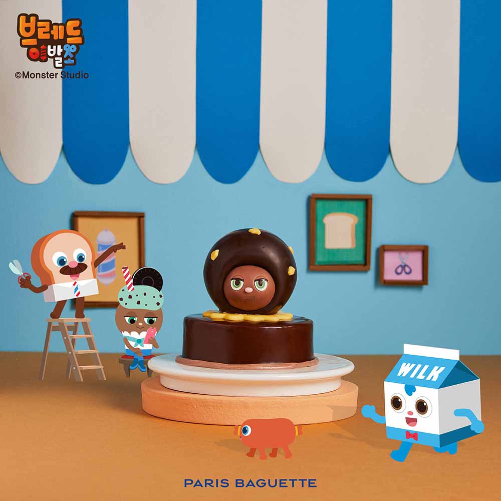 먼저 파리바게는 인기 애니메이션 ‘브레드 이발소’의 시크한 캐셔로 등장하는 ‘초코’의 매력을 그대로 살린 미니 초코 케이크 ‘초코랑 초코 케이크’를 선보였다. 촉촉한 초콜릿 케이크 스폰지와 초콜릿 크림, 바삭한 초코 크런치를 겹겹이 쌓아 달콤한 초콜릿으로 코팅한 제품으로, 초콜릿의 풍미와 크런치의 식감이 매력적이다. 케이크 박스에는 아이들이 즐길 수 있는 색칠공부 세트도 동봉돼 있다.