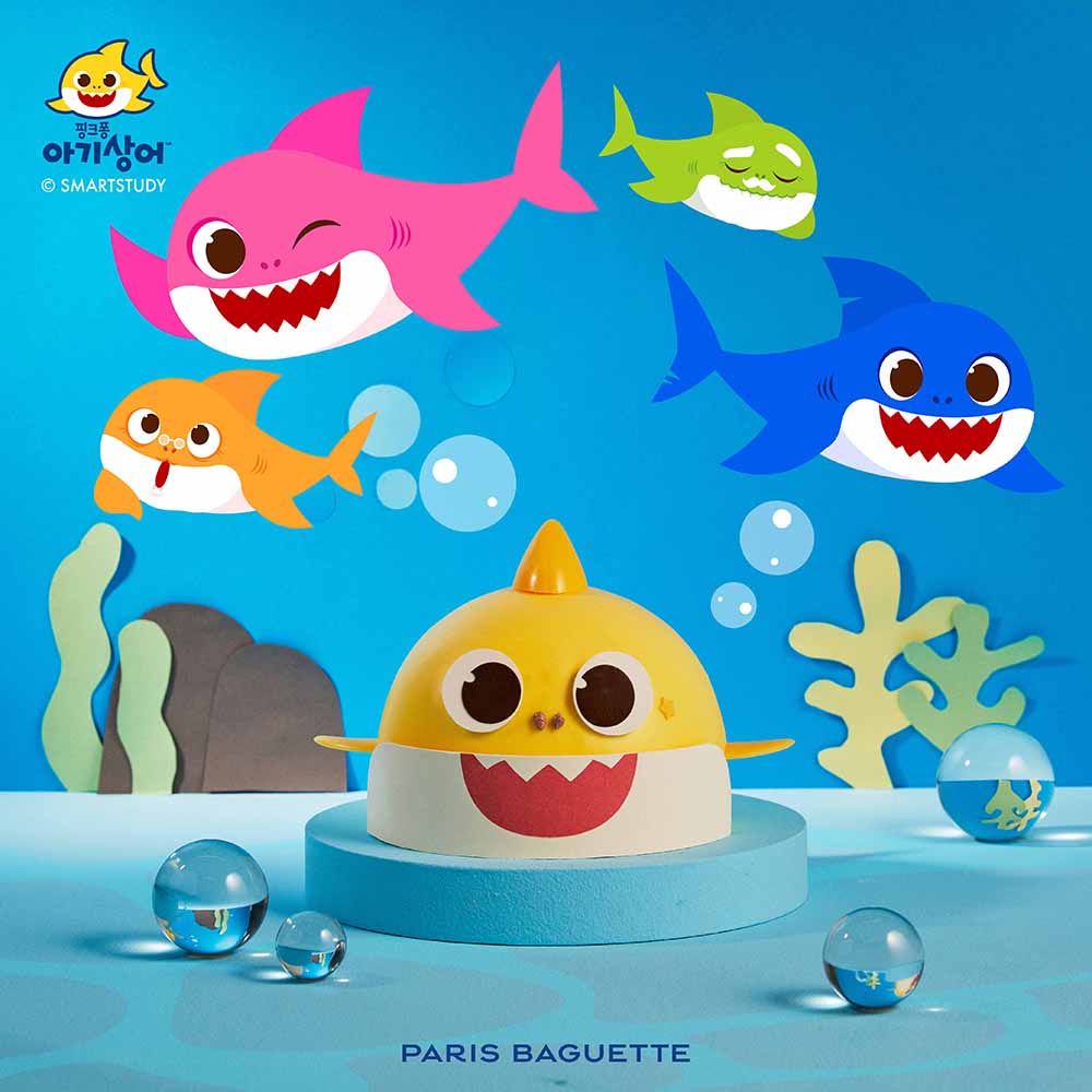전 세계 유튜브 조회수 1위로 글로벌 신드롬을 일으킨 스마트스터디의 인기 캐릭터 ‘핑크퐁 아기상어’를 그대로 구현한 초코 바나나케이크 ‘바닷속 뚜루루뚜루 상어가족’도 출시했다. 달콤한 바나나 스폰지와 바나나크림, 촉촉한 초콜릿 케이크 스폰지, 카라멜크림을 순서대로 레이어드해 완성했다. ‘아기상어’의 장난스러운 표정과 헤엄치는 모습을 그대로 구현했으며, 케이크 하판과 박스를 활용해 상어가족과 바닷속을 생생하게 표현했다.