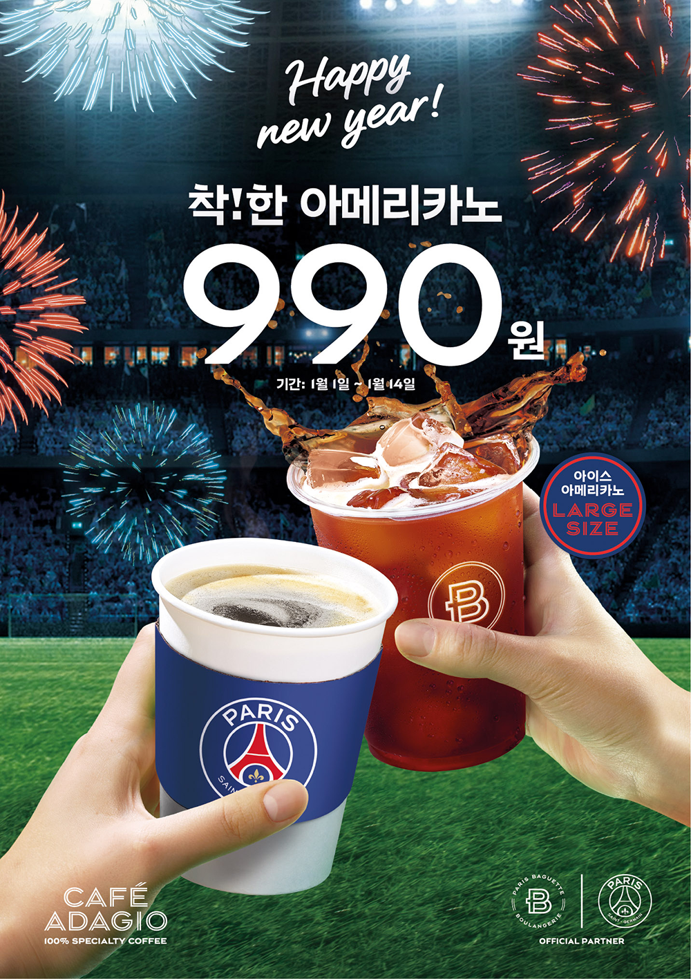 파리바게뜨가 자체 커피 브랜드인 카페 아다지오의 아메리카노를 990원에 판매하는 ‘착!한 아메리카노’ 행사를 1월 1일부터 진행한다.
