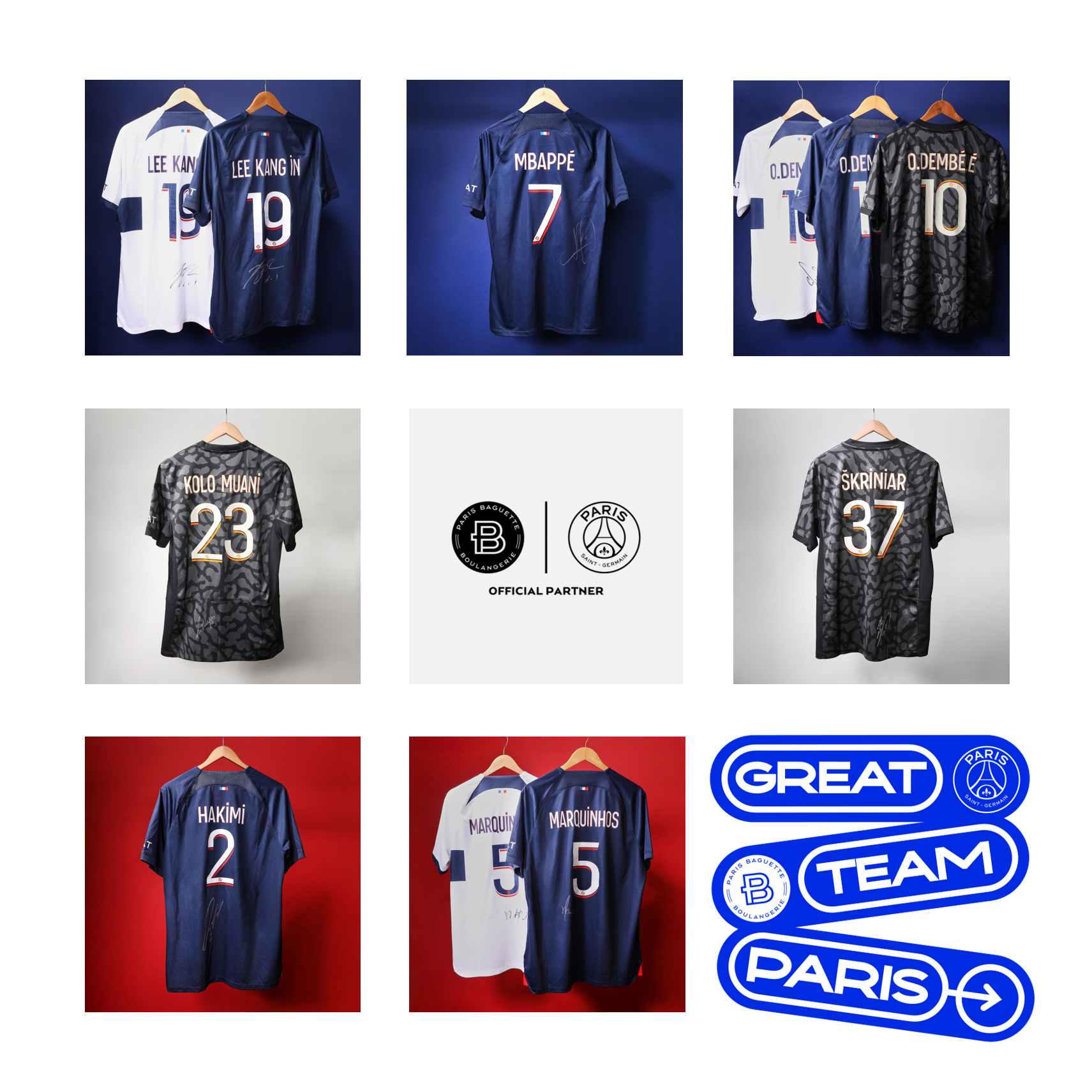 파리바게뜨는 추첨을 통해 △1등(2명)에게 파리 현지에서 직접 파리 생제르맹의 경기를 관람할 수 있는 VIP 티켓과 경기장 투어권 및 항공권, 호텔 숙박권 등이 포함된 500만 원 상당의 여행패키지 △2등(4명)에게 이강인, 킬리안 음바페, 우스만 뎀벨레, 마르퀴뇨스, 랑달 콜로 무아니, 밀란 슈크리니아르, 아치라프 하키미 등 파리 생제르맹 선수들의 친필 사인이 담긴 유니폼(랜덤 발송) △3등(20명)에게 파리 생제르맹 공식 유니폼 △4등(50명)에게 파리 생제르맹 공식 스카프 등 ‘파리 생제르맹’ 굿즈를 제공할 예정이다.