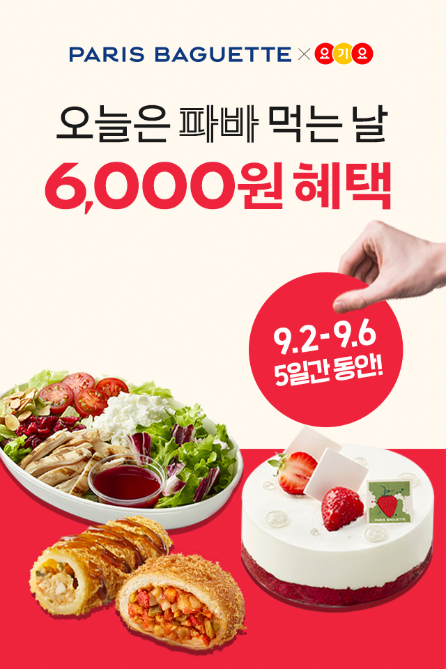 파리바게뜨의 배달 서비스인 ‘파바 딜리버리’가 배달 앱 요기요와 함께 ‘누구나 페스티벌’ 할인 프로모션을 진행한다고 2일 밝혔다. 파리바게뜨는 9월 2일부터 6일까지 총 5일 동안 소비자가 요기요 어플리케이션을 통해 파리바게뜨 제품을 1만 2천 원 이상 주문하면 최대 6천 원을 할인해준다.