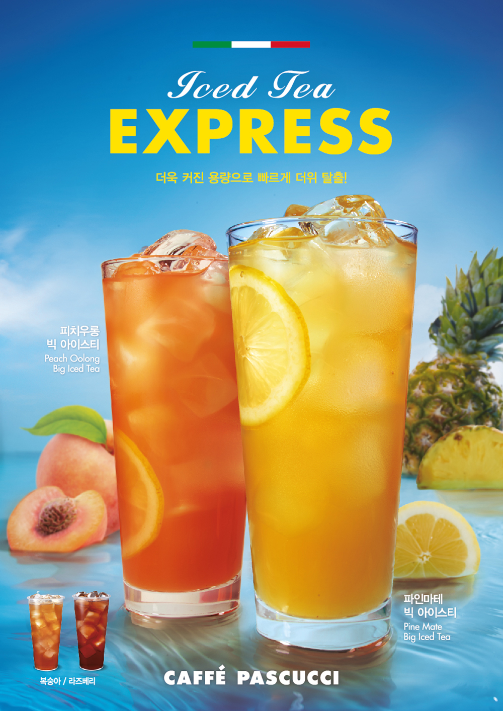 신제품 4종은 △ 달콤한 복숭아와 향긋한 우롱차가 잘 어우러진 ‘피치 우롱 빅아이스티(5,500원)’ △ 상큼한 파인애플과 마테차가 잘 어우러져 청량감이 돋보이는 ‘파인 마테 빅아이스티(5,500원)’ △ 달콤한 복숭아와 홍차가 조화를 이룬 ‘복숭아 빅아이스티(5,000원)’△ 새콤달콤한 라즈베리의 맛과 향을 시원하게 느낄 수 있는 ‘라즈베리 빅아이스티(5,000원)’이다.