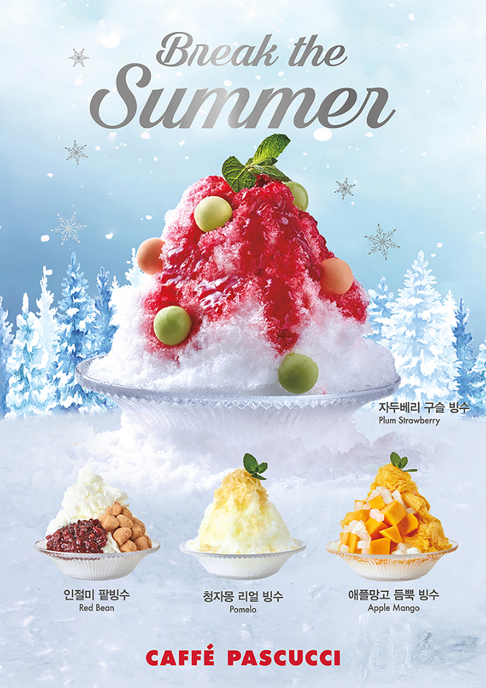 새롭게 선보이는 빙수는 “짜릿하게 시원한 빙수로 무더운 열기를 깨부셔 보세요! (Break the Summer)”를 콘셉트로, 포멜로(청자몽), 자두, 망고 등 다양한 과일을 사용하여 청량감을 살린 것이 특징이다.