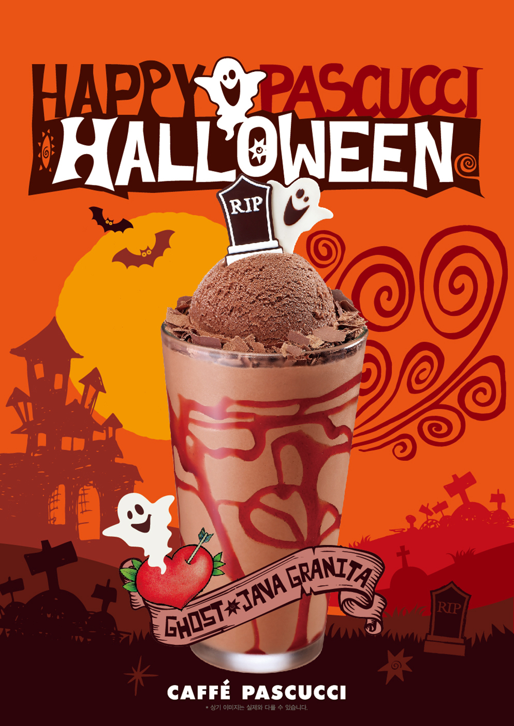 ‘HAPPY PASCUCCI HALLOWEEN’(파스쿠찌와 함께하는 해피 핼러윈!)을 테마로 출시한 이번 신제품은 자바칩의 진한 풍미, 민트의 알싸한 맛, 라즈베리 소스의 새콤달콤 한 맛, 초콜릿 젤라또의 쫀득함이 어우러진 ‘고스트 자바 그라니따(R/6,800원)’ 다.
