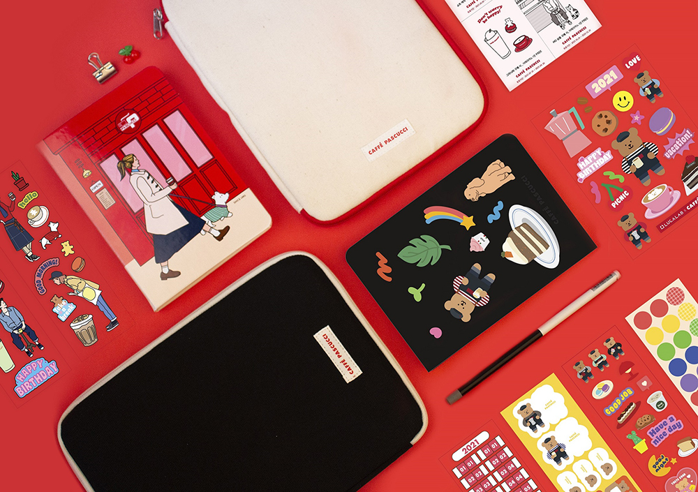 2021 파스쿠찌 플래너(정상가 29,000원)는 디자인 문구 브랜드 ‘루카랩’과 협업한 제품으로, 파스쿠찌를 상징하는 모카포트와 티라미사르도를 활용한 디자인이 특징이다. 플래너는 북 파우치와 플래너, 스티커가 세트로 구성되어 자신만의 다이어리를 꾸밀 수 있는 ‘DIY형 플래너 키트’, 파스쿠찌를 배경으로 한 일러스트가 그려진 플래너와 파우치, 스티커가 세트로 구성되어 있는 ‘일러스트 형 플래너 키트’ 등 2종이다. 신제품에 포함된 북 파우치는 플래너 보관은 물론 태블릿 PC, 휴대폰 등 다양한 소지품을 수납할 수 있어 활용도가 높다.