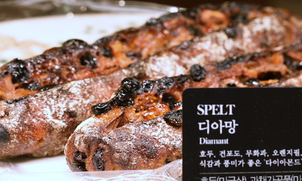 고대밀은 크게 두 종류로 나뉩니다. 바로 호라산 밀(Khorasan), 스펠트 밀(Spelt)인데요. 호라산은 일반 밀보다 낟알이 2배 이상 크고 황금 빛깔을 띱니다. 전세계 호라산밀의 90% 이상은 카무트(Kamut) 상표로 관리되고 있는데요. 패션5 테라스 매장 내에서는 이 호라산밀 중에서도 카무트 품종을 제분하고 있습니다. 또한 스펠트는 고대밀 품종 중 가장 인기 있고 대중적인 품종으로 일반 밀보다 단백질과 비타민 함량이 높고, 소화가 잘 된다는 특징이 있습니다.