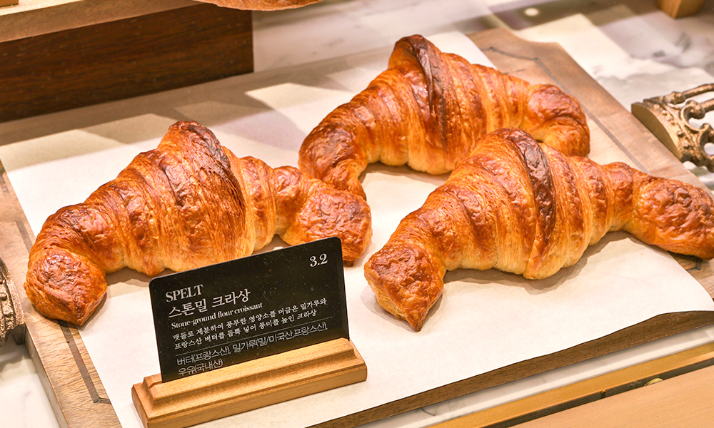 ‘스톤 밀 크라상’은 맷돌로 제분해 영양소 손실을 최소화한 고대밀 밀가루에 최고급 프랑스산 버터를 듬뿍 넣어 풍미를 높였습니다. 초승달 모양으로 구워진 크라상은 고소하고 담백한 맛이 특징으로, 유럽에서는 아침식사 대용으로도 사랑받는 빵입니다. 가벼운 한 끼 식사로 즐기기 좋겠지요? 이외에도 패션5 테라스에서는 대추야자&마카다미아 브레드, 고대밀 식빵, 무화과 라미장 등의 고대밀빵을 선보이고 있습니다.