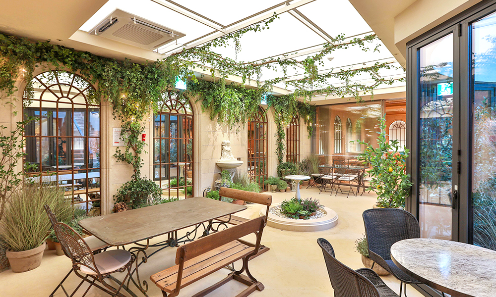 먼저 ‘테라스’라는 이름에 걸맞은 공간 디자인을 살펴보겠습니다. 건물 중앙부에 설계된 중정을 통해 들어오는 자연 채광을 최대로 살리기 위해 접이식 창이 적용되었습니다. 따스한 햇살과 함께 최고의 베이커리 제품을 즐길 수 있습니다. 곳곳에 식물 화분이 배치되어, 도심 속 쉼터 같은 분위기를 한층 더 살려줍니다.