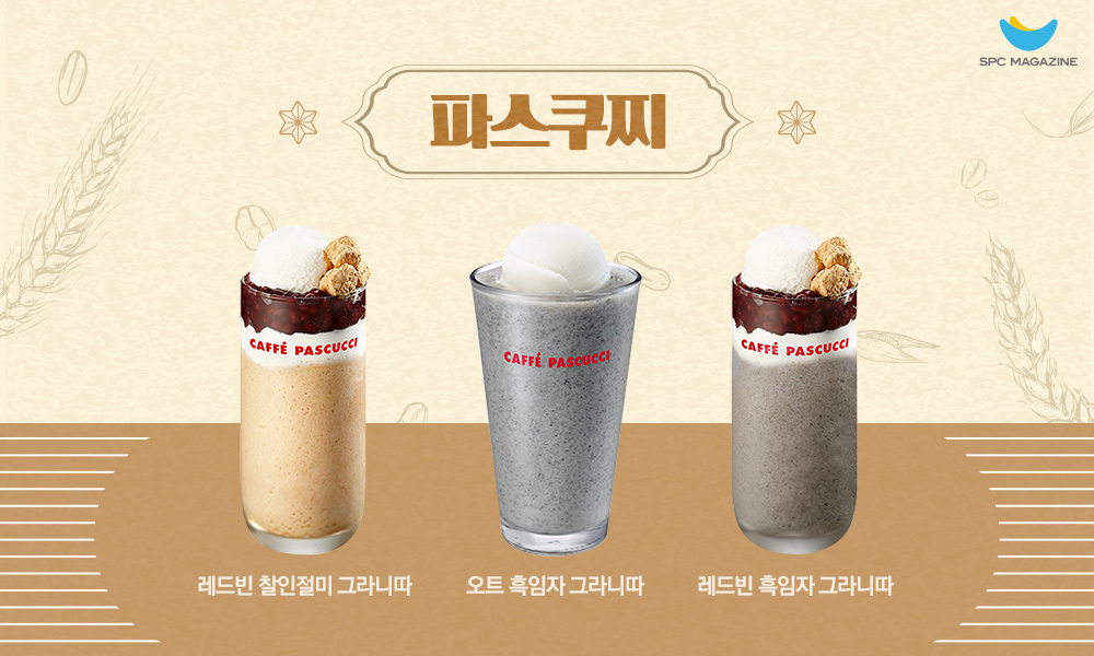 팥, 흑임자, 인절미 등 고소함 속에서 느껴지는 은은한 단맛이 매력적인 한국식 전통 재료들. 파스쿠찌는 이를 활용한 다양한 맛의 그라니따로 많은 사랑을 받고 있는데요. ‘레드빈 흑임자 그라니따’는 우유 베이스에 흑임자, 팥, 인절미, 천일염 젤라또가 어우러진 그라니따로 시즌 스테디셀러로 꼽히고 있습니다. ‘레드빈 찰인절미 그라니따’는 콩가루, 달콤한 팥, 인절미 떡, 천일염 젤라또가 우유와 만나 고소함과 달콤함을 동시에 느낄 수 있습니다. 식물성 귀리 우유 오틀리와 흑임자, 천일염 젤라또로 고소함을 두 배로 맛볼 수 있는 ‘오트 흑임자 그라니따’는 흑임자 마니아들 사이에서 입소문이 난 제품인데요. 이처럼 한국 전통 재료와 이탈리아 정통 여름 음료의 맛있는 조합이 궁금하다면 파스쿠찌를 방문해주세요!
