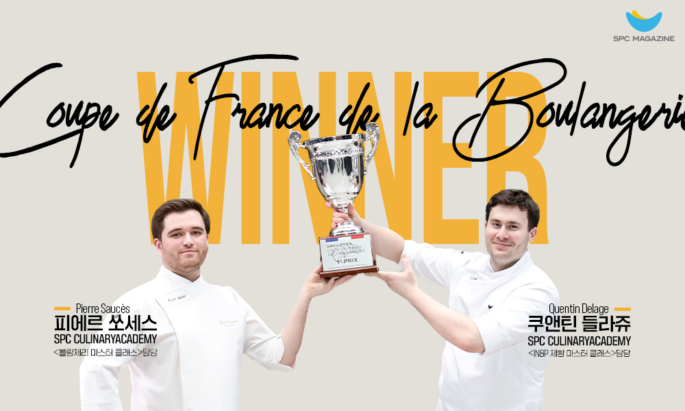 SPC컬리너리아카데미 소속 강사 쿠앤틴 들라쥬(Quentin Delage), 피에르 쏘세스(Pierre Saucès)가 지난 1월 식품전시회 ‘시라 리옹(SIRHA Lyon)’에서 열린 프랑스 제빵대회 ‘쿠프 드 프랑스 드 라 블랑제리(Coupe de france de la Boulangerie)’에서 우승, 프랑스 제빵 챔피언 타이틀을 따냈습니다. 이 대회는 올해 16회를 맞이한 역사 깊은 대회이자, 우승팀은 32년 역사의 ‘쿠프 드 유럽 드 라 블랑제리(Coupe de Europe de la Boulangerie)’에 출전 자격이 주어질 정도로 제빵업계에서 권위를 인정받는 대회입니다.