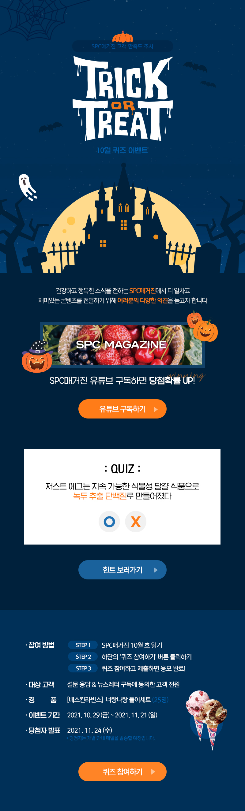 페북 좋아요 페북 팔로우 페북 팔로우 설문조사 함께 보기 좋은 글 10월 SPC매거진 이벤트지금 설문하러 갑니다 10월 SPC매거진 이벤트 당첨자 발표설문왕 10월 SPC매거진 이벤트 ‘당첨자 발표’지금 설문하러 갑니다 Tags: 10월SPC그룹배스킨라빈스이벤트할로윈Post navigationPreviousPrevious post:언제 어디서나, 라그릴리아로 ONNextNext post:던킨, 새로운 추출 방식으로 더 맛있어진 ‘던킨 에스프레소’ 선봬