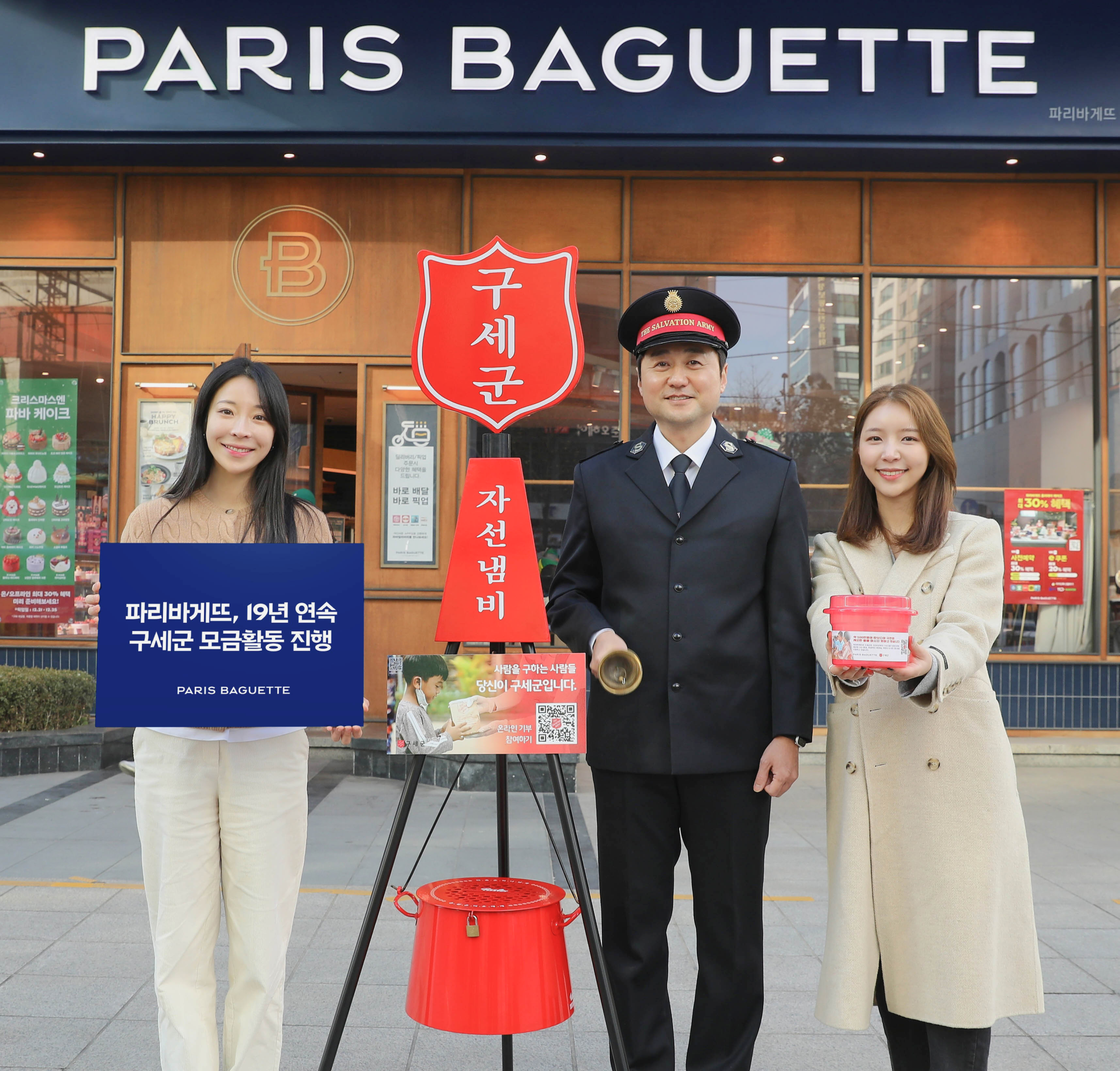 구세군과 함께 미니 자선냄비를 전국 3,400여 매장에 설치하고 모금 활동을 19년째 이어가고 있는 파리바게뜨