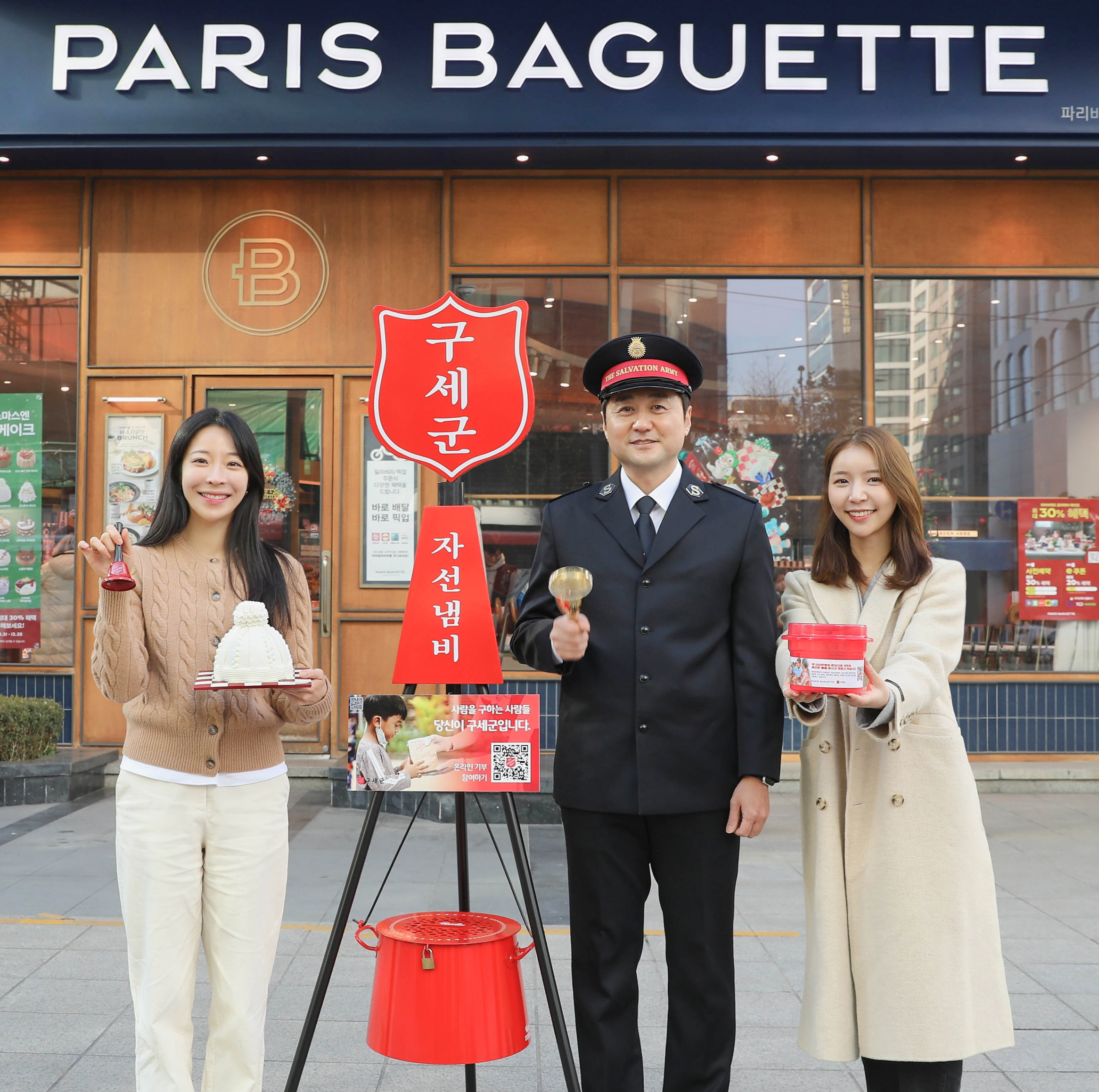 2006년부터 매년 겨울, 구세군 1호 성금을 전달하며 본격적인 나눔의 계절을 시작해 온 파리바게뜨. 올해도 고객들이 손쉽게 기부에 동참할 수 있도록 전국 매장에서 미니 자선냄비와 QR코드를 준비했습니다. 고객들은 계산 후 잔돈을 기부하거나 QR코드를 통해 간편하게 후원할 수 있는데요. 이번 모금은 내년 2월 말까지 진행될 예정입니다.