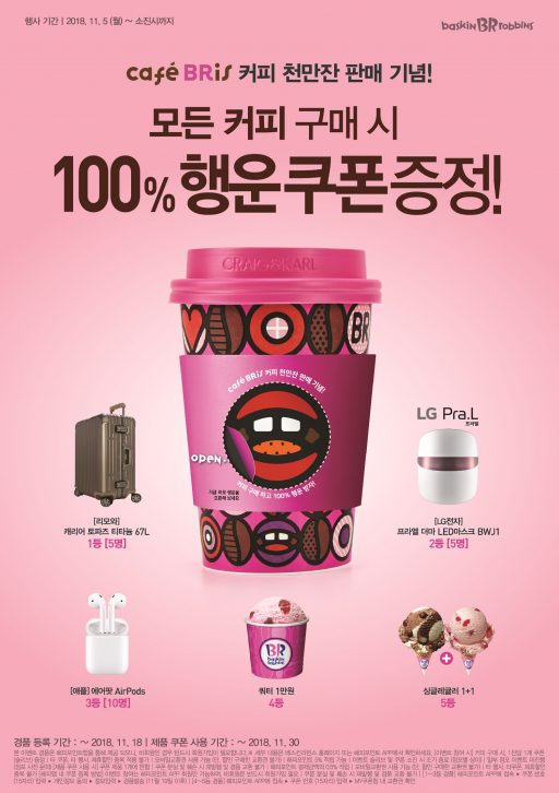 모든 커피 구매시 100% 행운 쿠폰 증정!