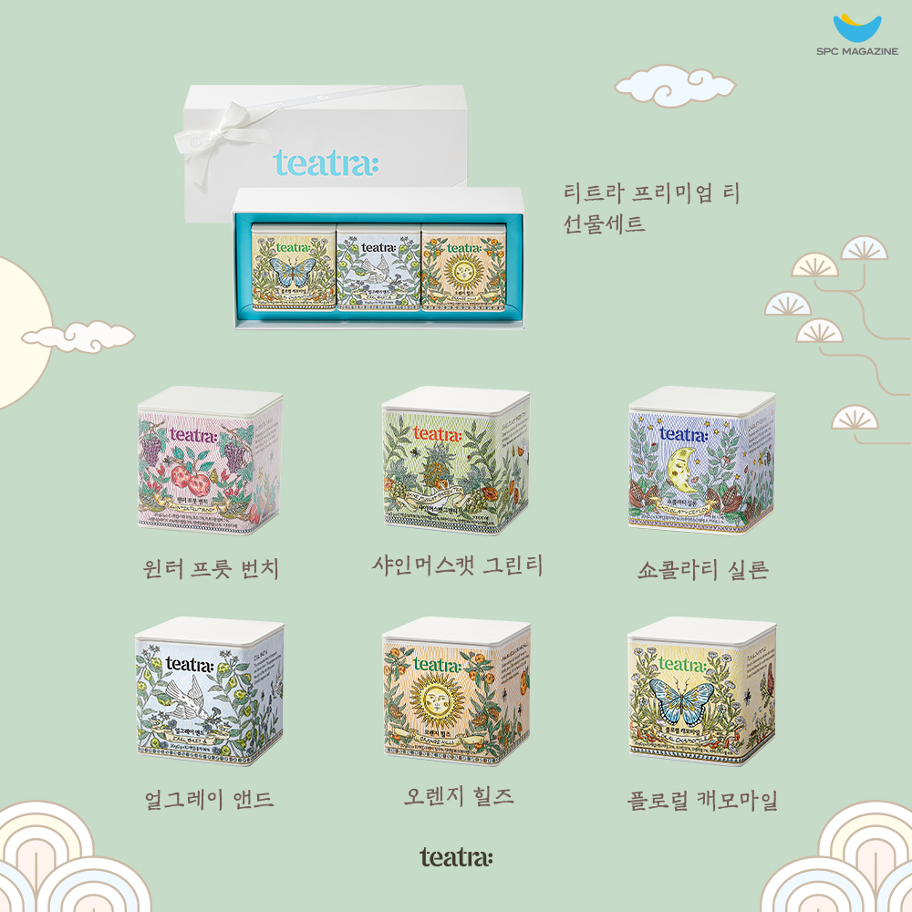 심신의 건강과 힐링을 중시하는 웰니스(Wellness) 트렌드는 지난해에 이어 2022년에도 계속 이어질 전망인데요. 특히 코로나19 팬데믹의 장기화로 인해 집이나 사무공간 등 실내에서 누릴 수 있는 건강 아이템이 주목받고 있습니다. SPC그룹의 티 브랜드인 티트라(teatra)는 전 세계 주요 산지에서 직접 찾아낸 원료로 블렌딩한 프리미엄 티를 선보이고 있는데요. 젊고 현대적인 감성이 더해진 티트라 프리미엄 티로 향긋하고 건강한 여유를 선물해보는 건 어떨까요? 티트라 프리미엄 티 6종 가운데 원하는 제품 3가지를 선택해 선물세트로 구성할 수 있는데요. 고급스러운 선물 박스와 쇼핑백에 정성스레 포장해 제공됩니다.
